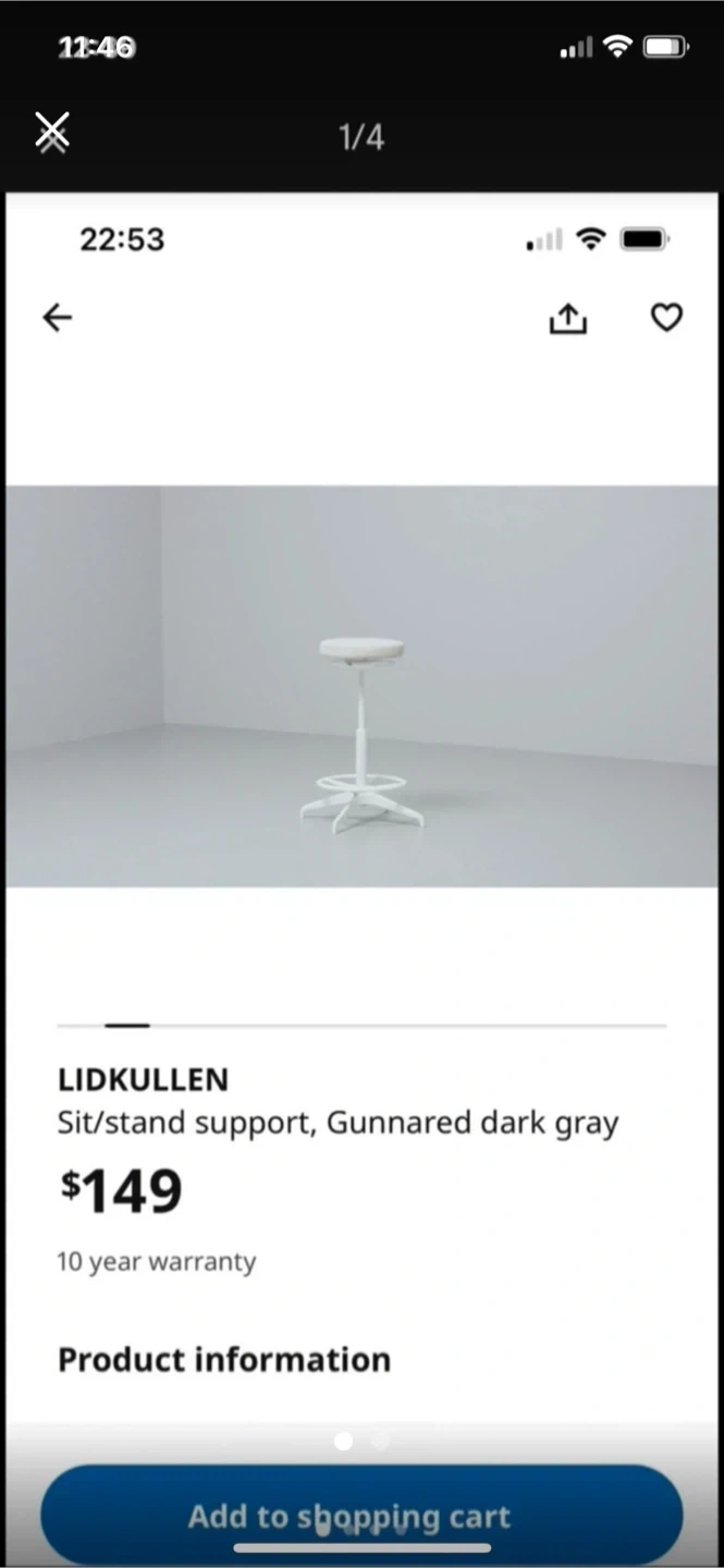 618Selling an IKEA Lidkullen sit/stand stool in Gunnared dark grey! It's in great condition and ready for a new home. This stool is perfect for anyone who wants to switch between sitting and standing while working. Originally bought for $149