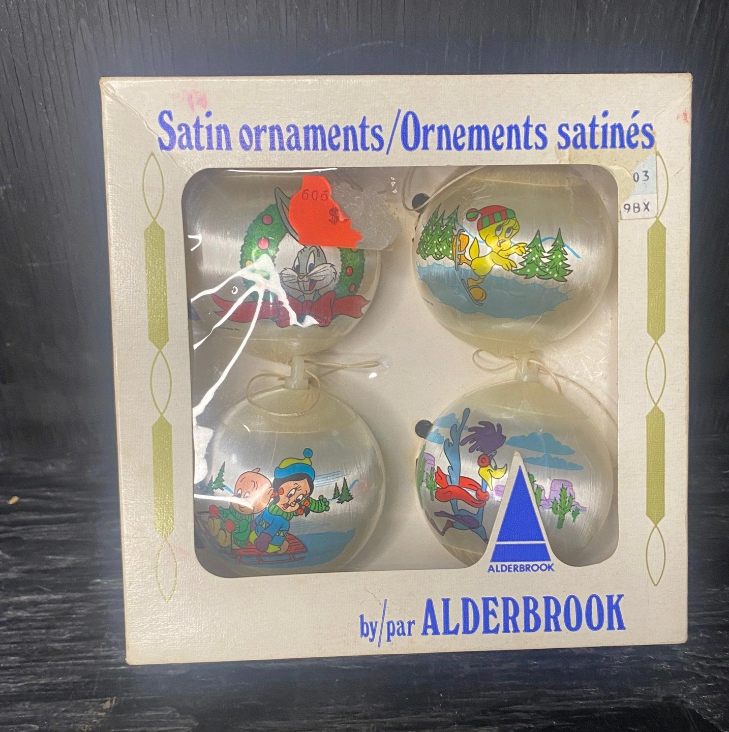 Bring a touch of Christmas cartoon nostalgia to your home today. Each Vintage Looney Tunes Threaded Christmas Ornament is made of what we believe to be a plastic base with fabric/threaded outer layer. The graphics on these Looney Tunes ornaments are double sided. They are in excellent condition and are like new.
