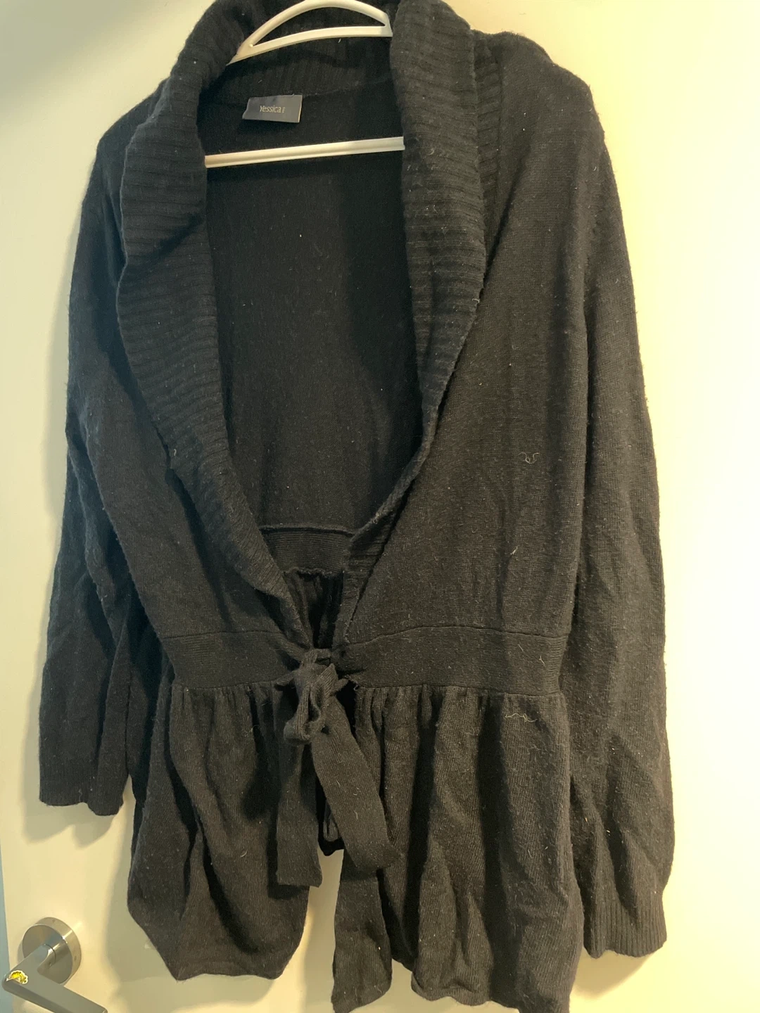 618Selling a Jessica cardigan in black. It has a tie at the waist. In good condition!