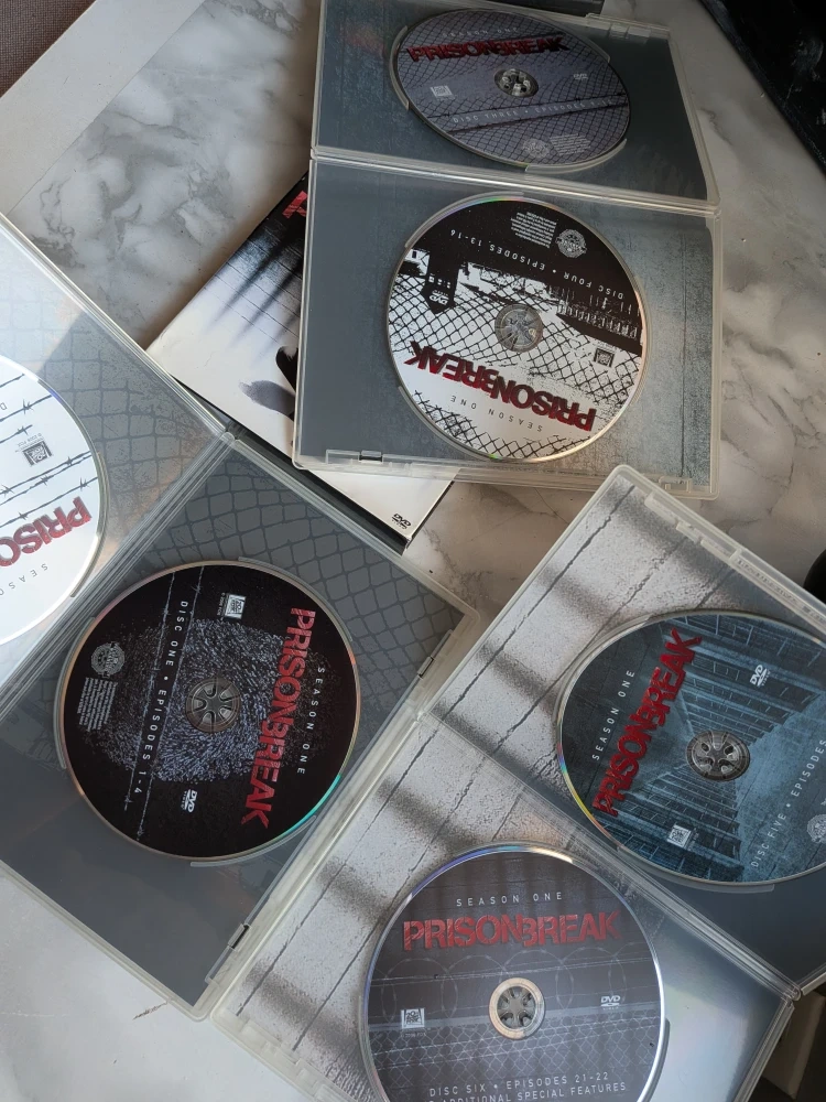 Selling a complete DVD set of Prison Break: Season One! This 6-disc set includes all 22 Season One episodes, audio commentaries, featurettes, Fox Movie Channel presentations, and alternate/deleted scenes! Perfect for any fan of the show