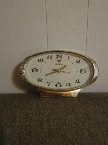 Vintage Alarm Clock Mechanical Wind-Up, Mid Century Oval Clock Made In China. Condition is "Used".