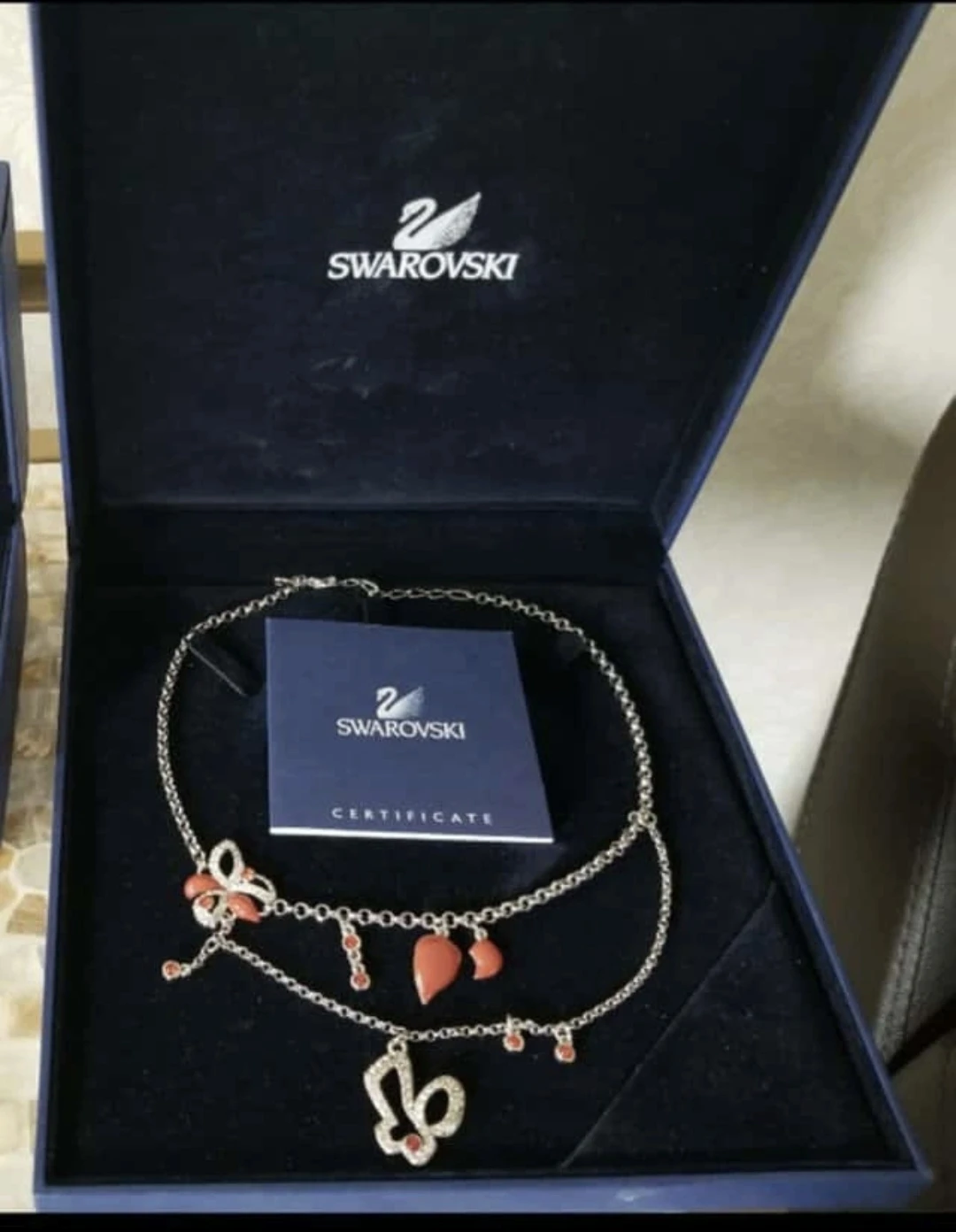 Authentic Swarovski, floral design, coral, enamelled necklace