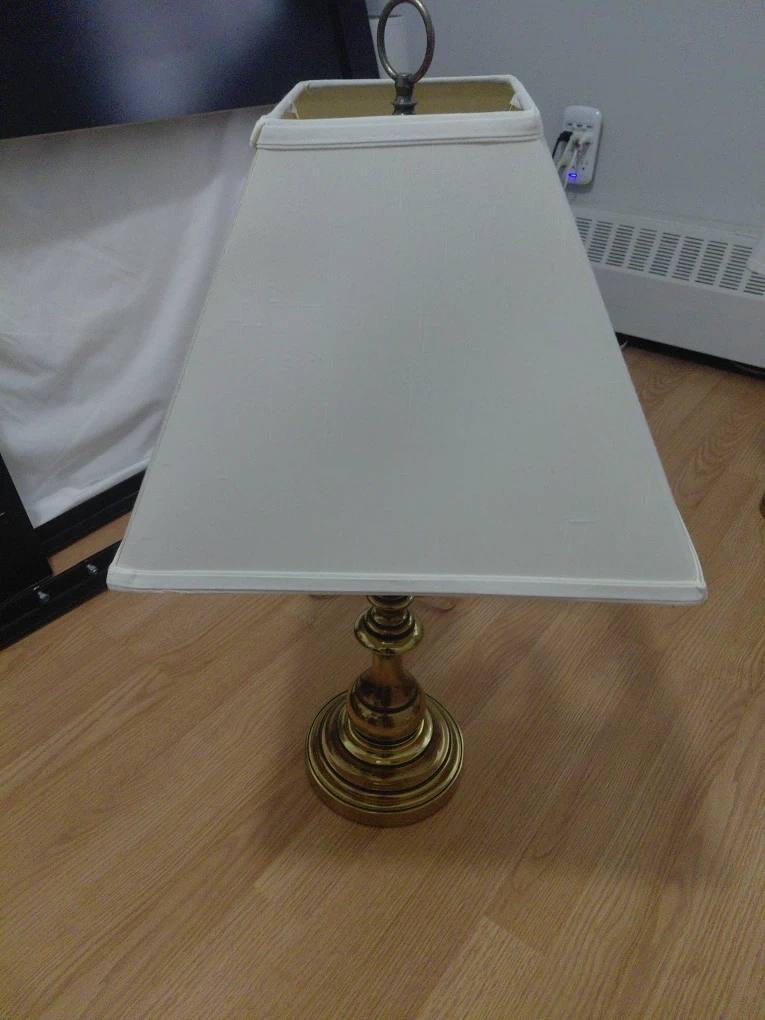 Selling 2 table lamps featuring a classic design with brass and a white, square lampshades. They are in great condition and would look lovely in any room! CASH ONLY. NO DELIVERIES.