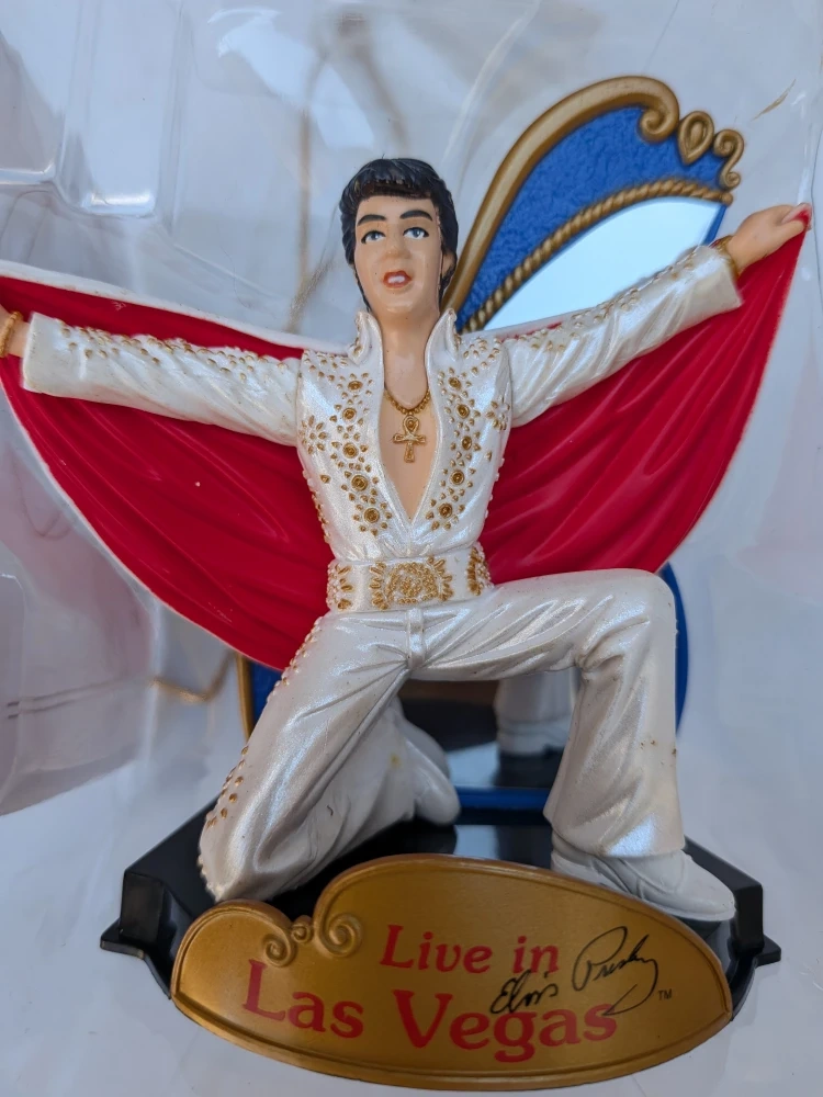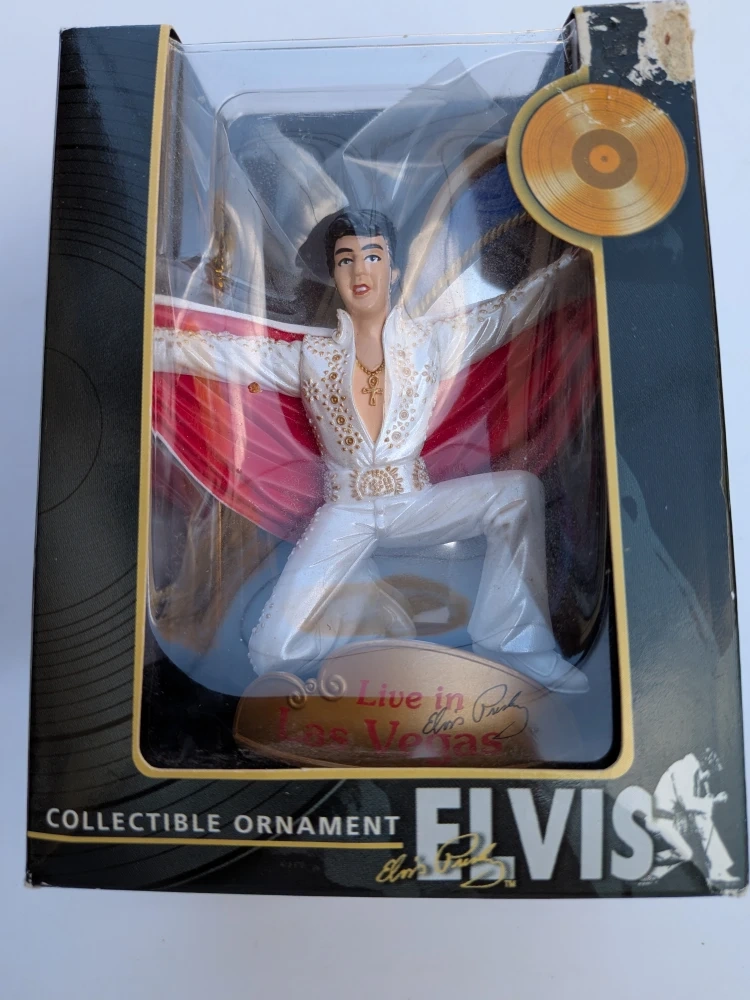 Selling an Elvis Presley collectible ornament, featuring Elvis 'Live in Las Vegas'! It comes in its original box, making it a great addition to any collection