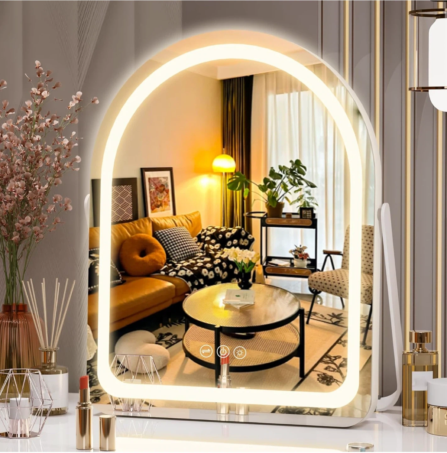 Brand new in box. Hasipu Vanity Mirror with Lights, 11"× 14" Arched LED Makeup Mirror, Lighted Makeup Mirror with Lights, Smart Touch Control Dimmable 3 Modes Light 360°Rotation White