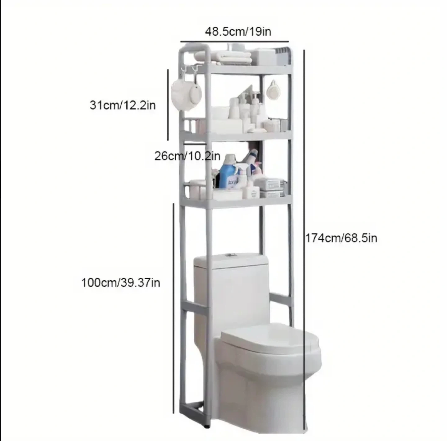 Declutter your bathroom with this handy over-the-toilet shelf! It's a great way to add some extra storage without taking up too much space. Colour: white