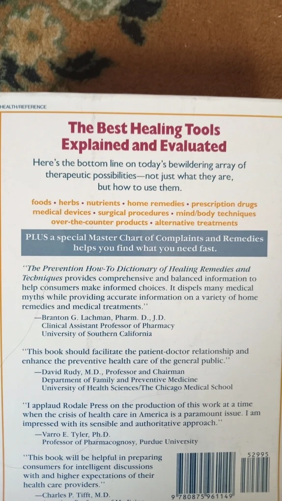 45Selling "The Prevention How-To Dictionary of Healing Remedies and Techniques". It explains and evaluates today's array of therapeutic possibilities, including foods, herbs, nutrients, home remedies, prescription drugs, medical devices, surgical procedures, mind/body techniques, over-the-counter products, and alternative treatments. It also includes a special master chart of complaints and remedies to help you find what you need fast. Hard cover 499 pages Make offer