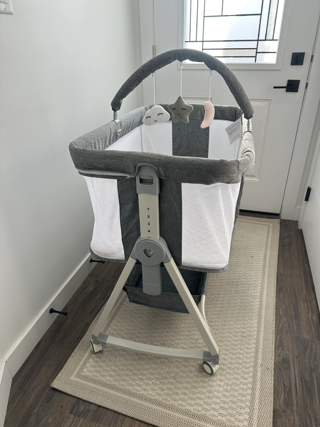 Selling a brand new Baby Bassinet- a 3-in-1 bedside sleeper, crib, and portable bassinet. Designed for comfort, safety, and convenience with multiple features parents will love.