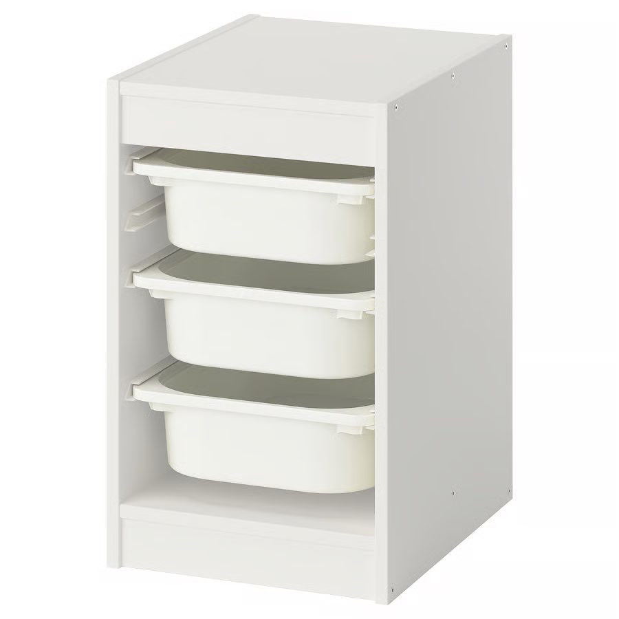 You can use this storage solution with plastic storage boxes for a lot of things and in different ways.