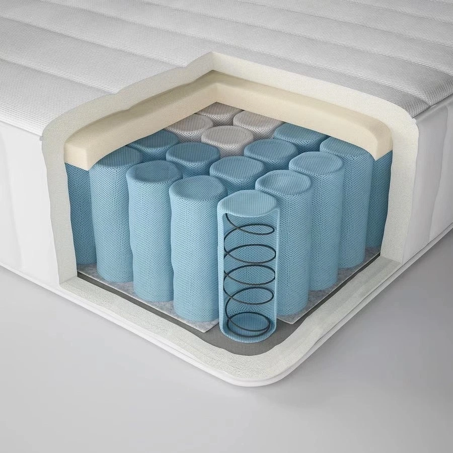 A 24 cm medium-firm high mattress with individual pocket springs. Even distribution of body weight by comfort zones offers softer support for hips and shoulders. A thick layer of foam adds to the comfort.