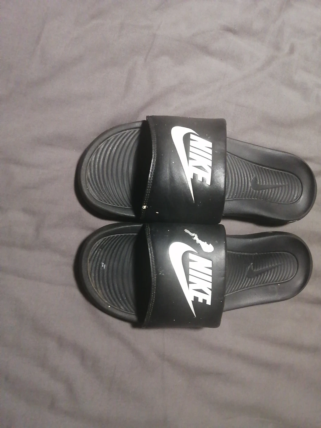 Selling a pair of Nike slides in black. They show some signs of wear, as pictured, but still have plenty of life left!