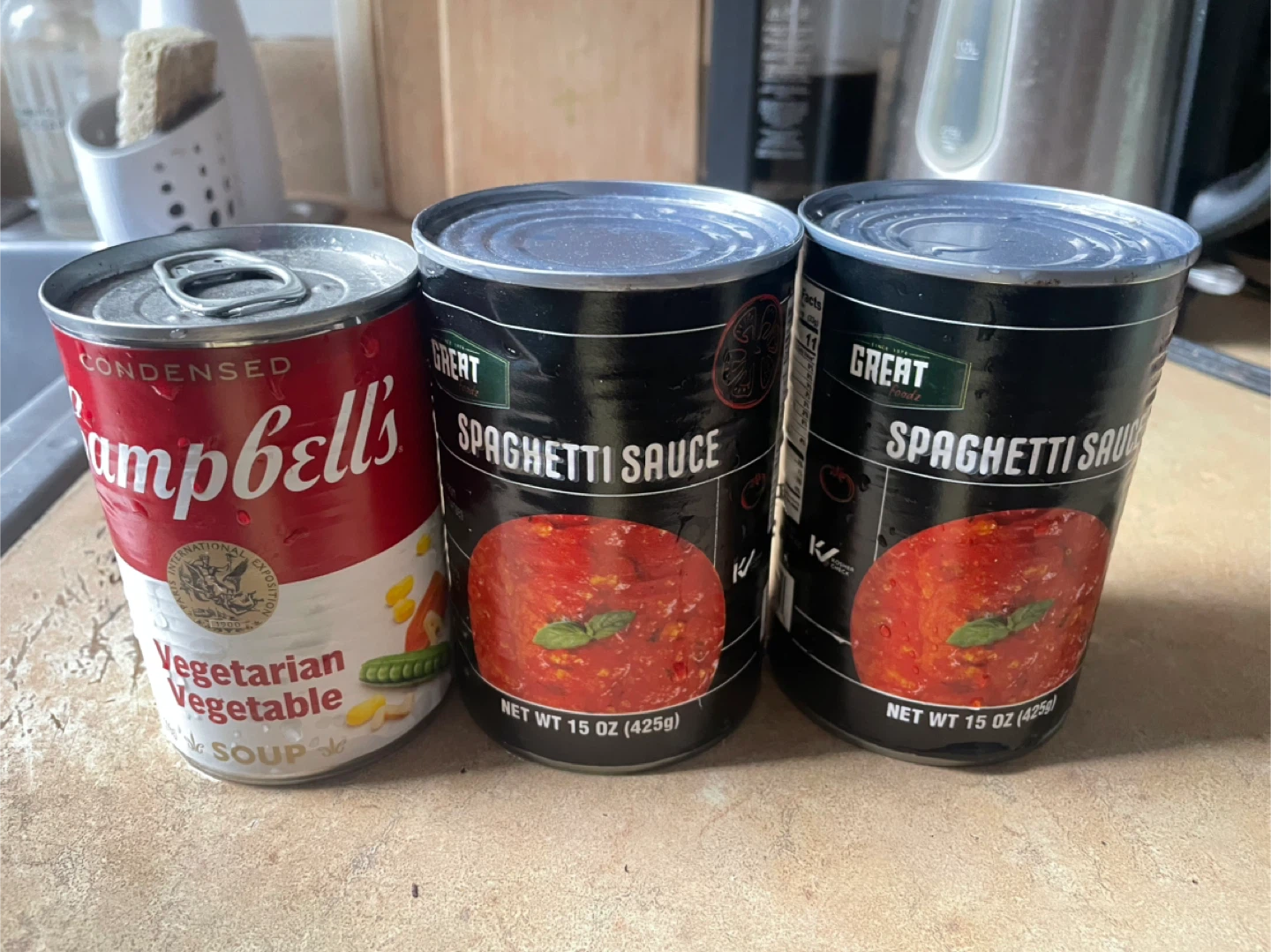 I'm giving away a can of Campbell's Vegetarian Vegetable Soup and two cans of Great Value Spaghetti Sauce. Each can is 15 oz (425g). They are ready for your next meal! All good with them, im just not going to use them. Pickup brooklyn.