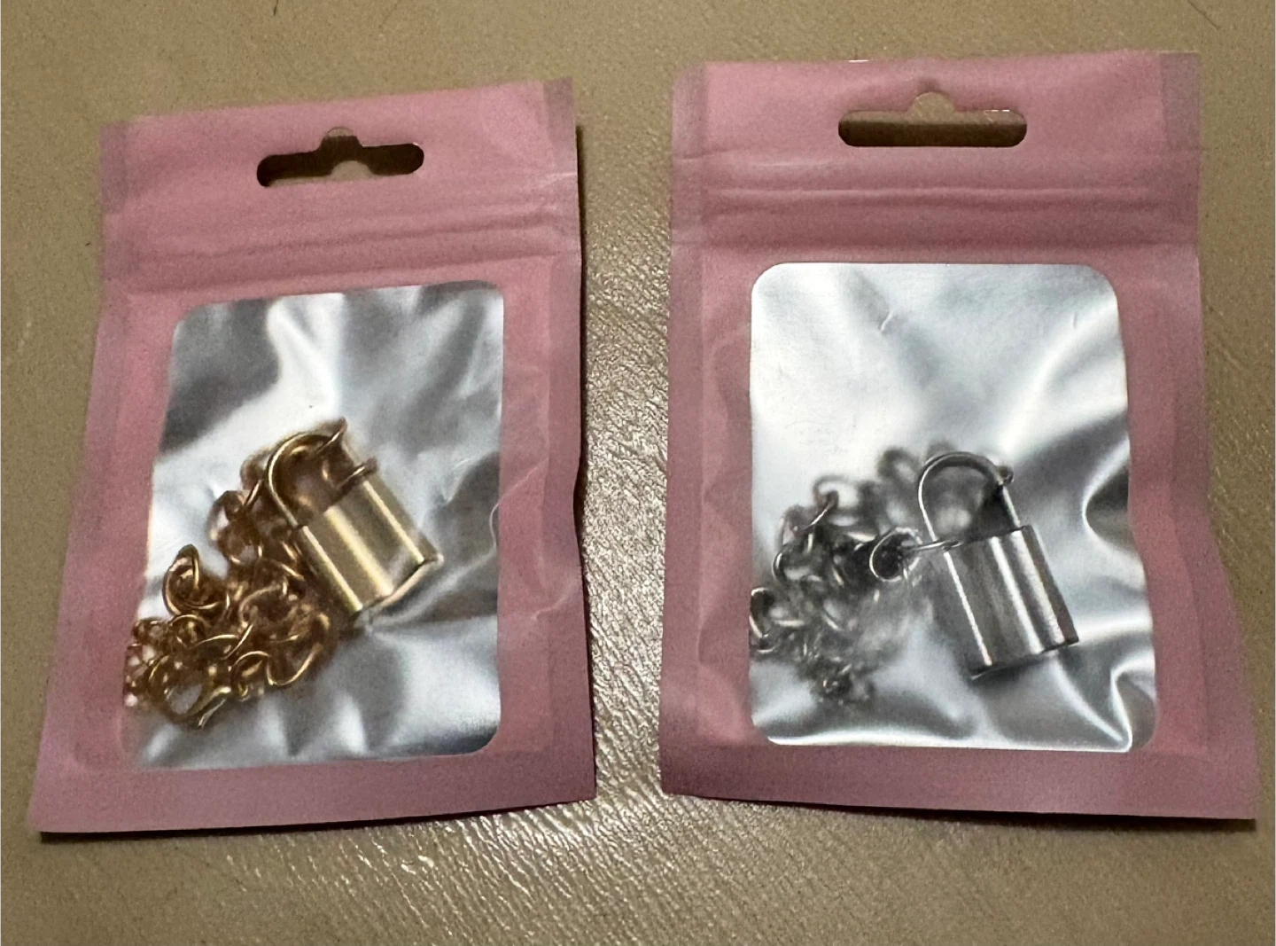 These super cute lock chain anklets are perfect for a holiday gift. They come in silver or gold colours and will be in a pink gift pouch ready to go!