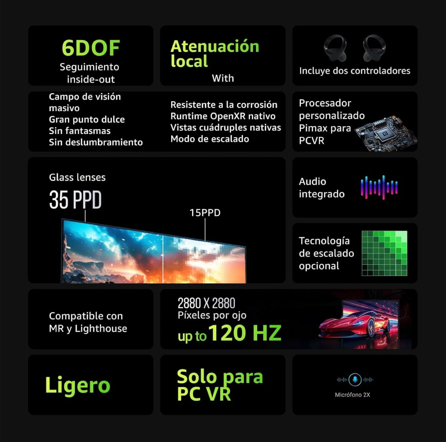 - 2880 x 2880 pixels per eye, up to 120 Hz