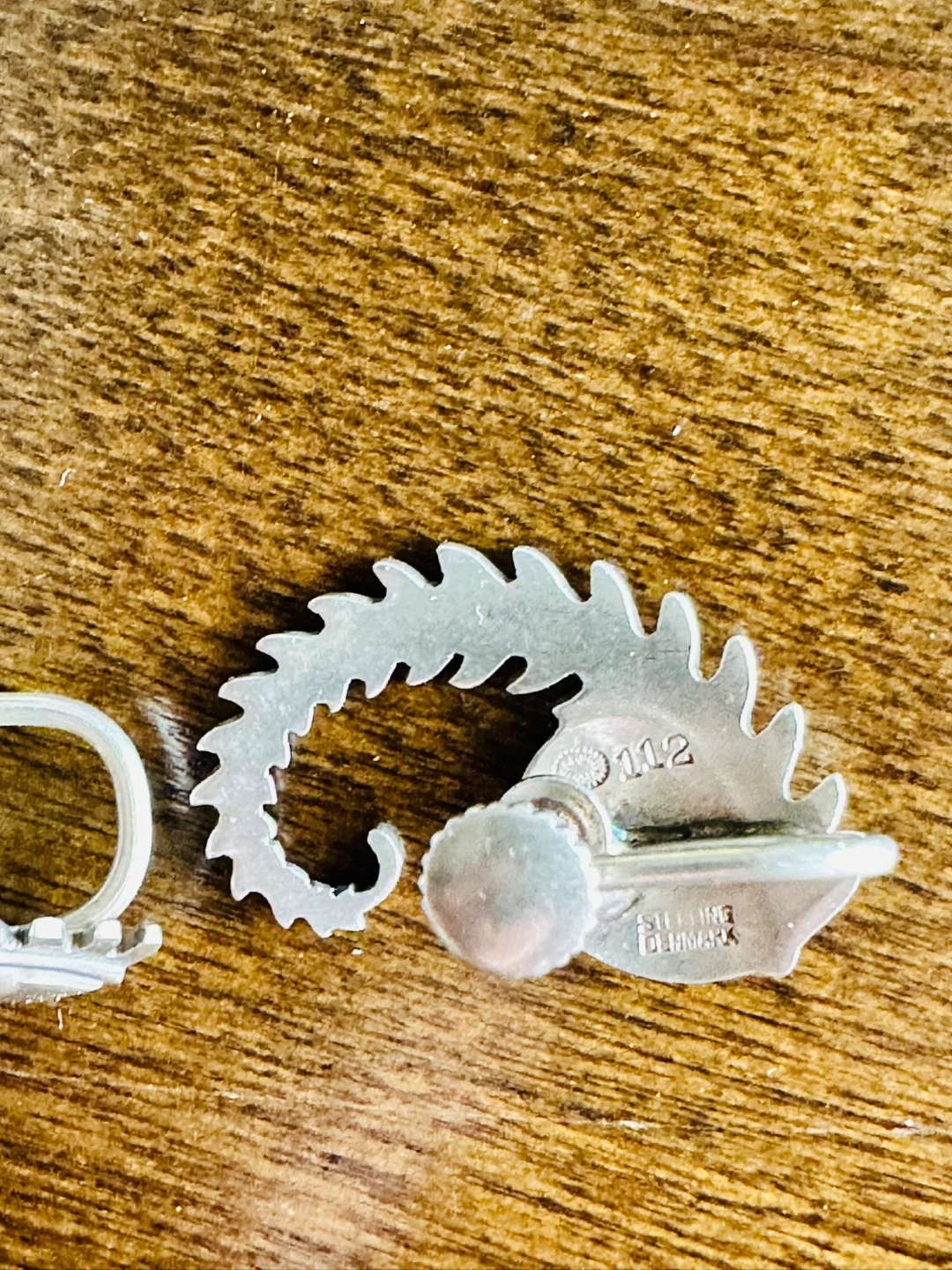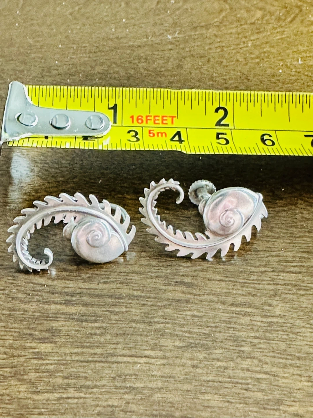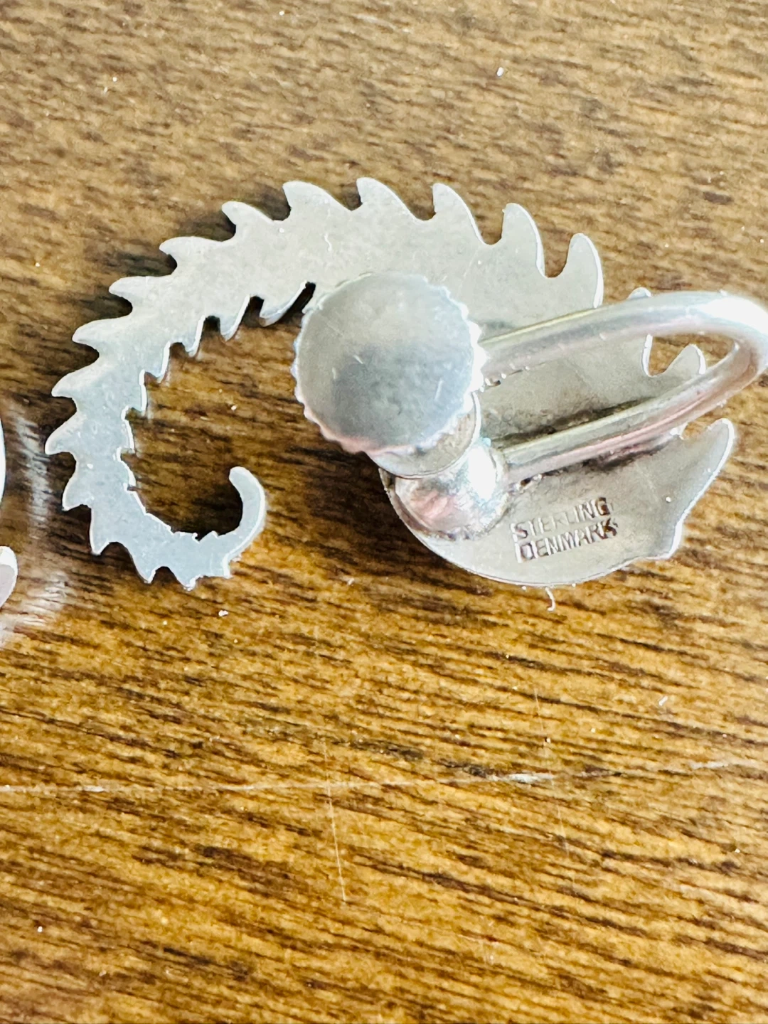Georg Jensen Sterling Silver clip back Art Deco design earrings in pattern number 112. They were designed by Arno Malinowski in the 1930's. These are known as his "snail with fern design". They measure 1 inch (25mm) by 3/4 inch (20mm) and weigh approx. 7 grams. We believe that this design is no longer in production. They are in superb condition with no flaws, dings or damage. The very comfortable clip backs have aclip back design that will hold them on the ear and prevent loss. The earrings have a nice toning in between the delicate grooves.