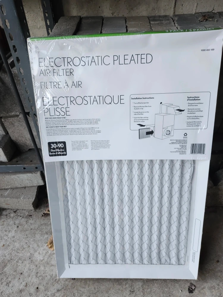 Selling a pack of three electrostatic pleated air filters. They're designed to filter air effectively in your home. The package indicates they are for 30-90 days effective use. Great for improving your indoor air quality!