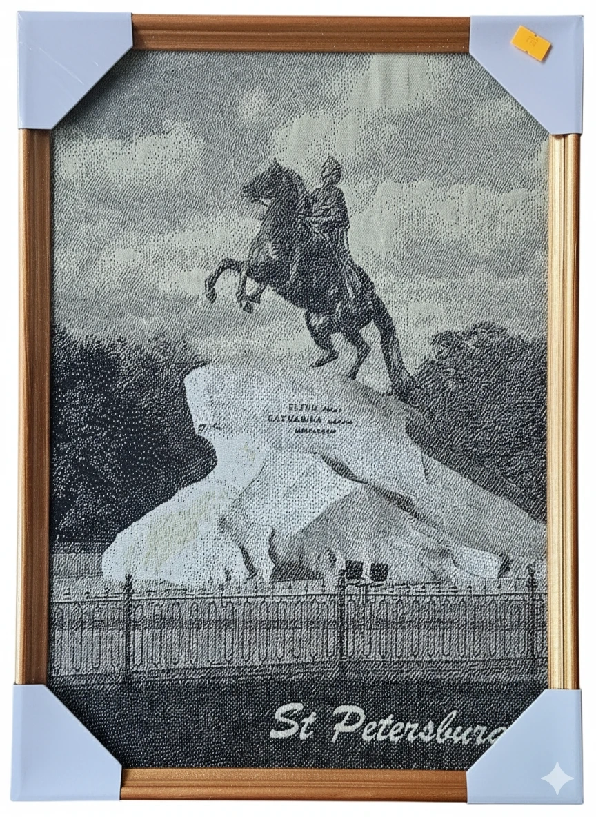 This is a framed tapestry featuring St Petersburg. It's brand new, in great condition, and ready to hang in your home!