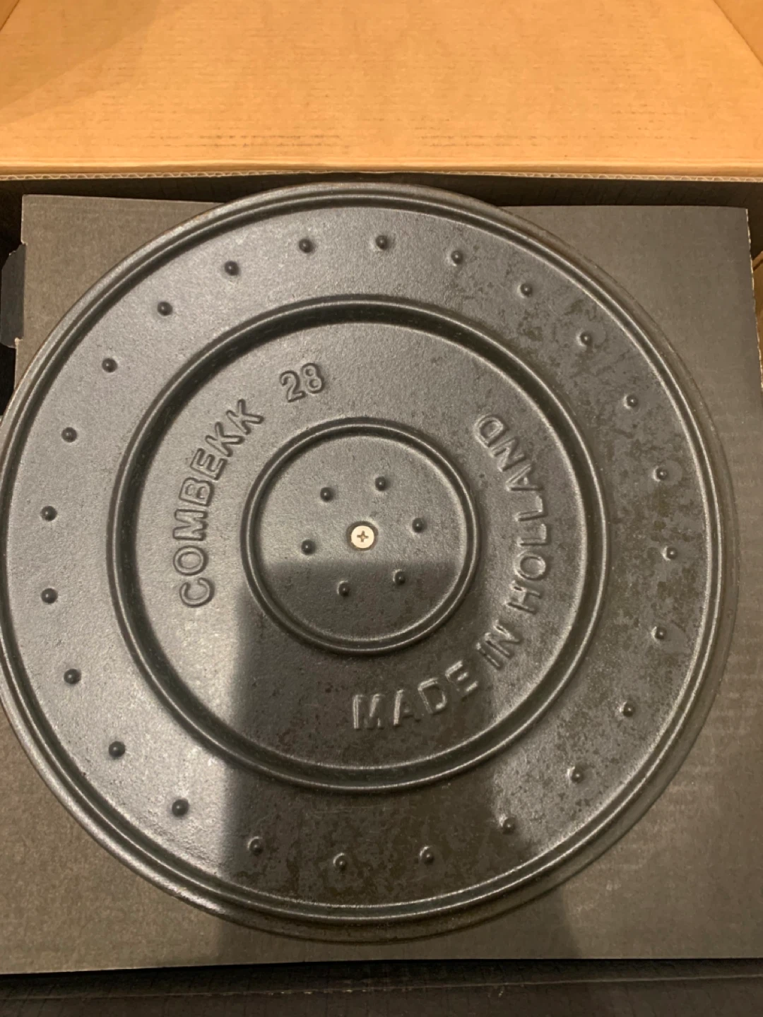 This 28cm cast iron pot is perfect for slow cooking, braising, roasting, and baking. It's suitable for all heat sources, including induction. The Dutch Oven serves 6 to 8 people. Originally bought for $379.91. Comes with the box!