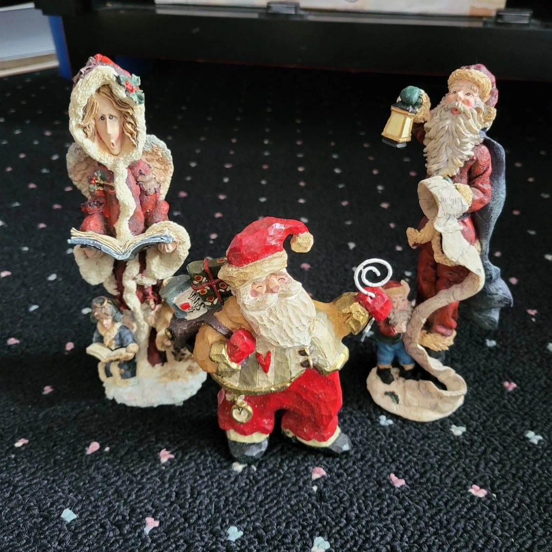 Selling a set of Christmas Holiday figurines. They're in great shape and ready to bring some holiday cheer to your home! Includes Boyds Bears and Friends Caroler, Curtis Adler Snowtown Santa, & Santa Claus.