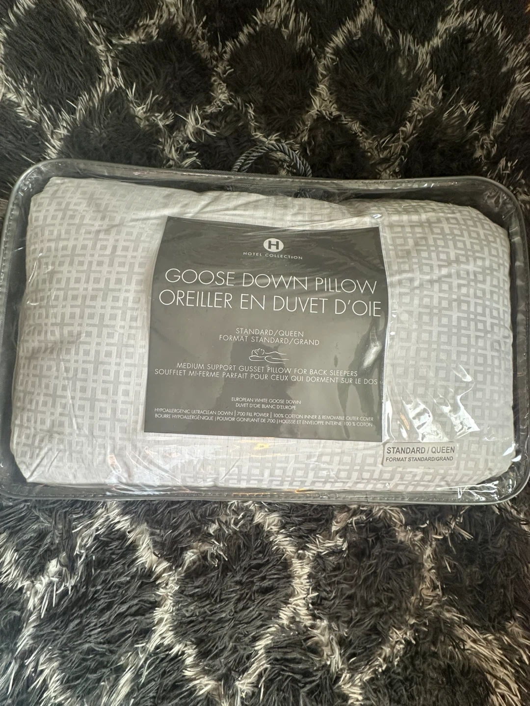 I'm selling a brand new Hotel Collection goose down pillow in standard/queen size! It's still in its original packaging. This pillow balances casual luxury and contemporary style, featuring premium white goose down (the finest quality cluster due to its pure content and large size) along with a high thread count and 100% cotton cover. It retails for $650.00