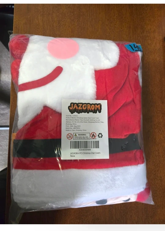 - Add a festive touch to your holiday gatherings with the Jazgrom Christmas Chair Back Covers. This set includes four beautifully designed chair back covers, each featuring a jolly Santa Claus. Perfect for decorating your dining chairs, these covers add a cozy and cheerful vibe to your kitchen or dining area during the holiday season. Crafted from high-quality materials, these covers are durable, easy to slip on, and fit most standard dining chairs. Whether you're hosting a Christmas dinner or a holiday party, these chair back covers are a charming addition to your indoor holiday decor.