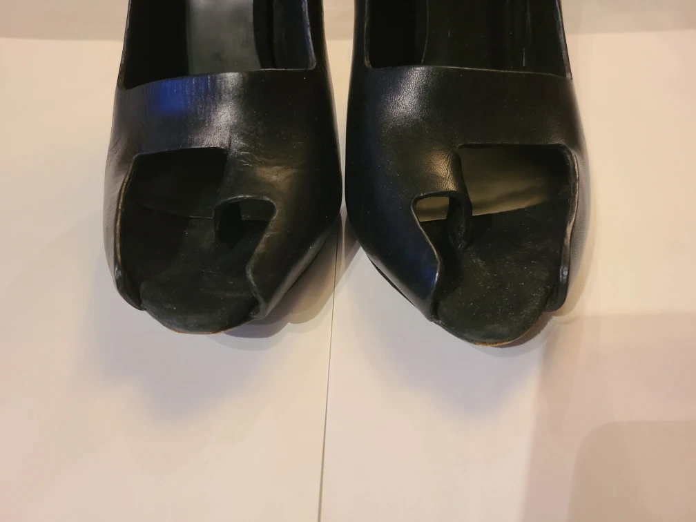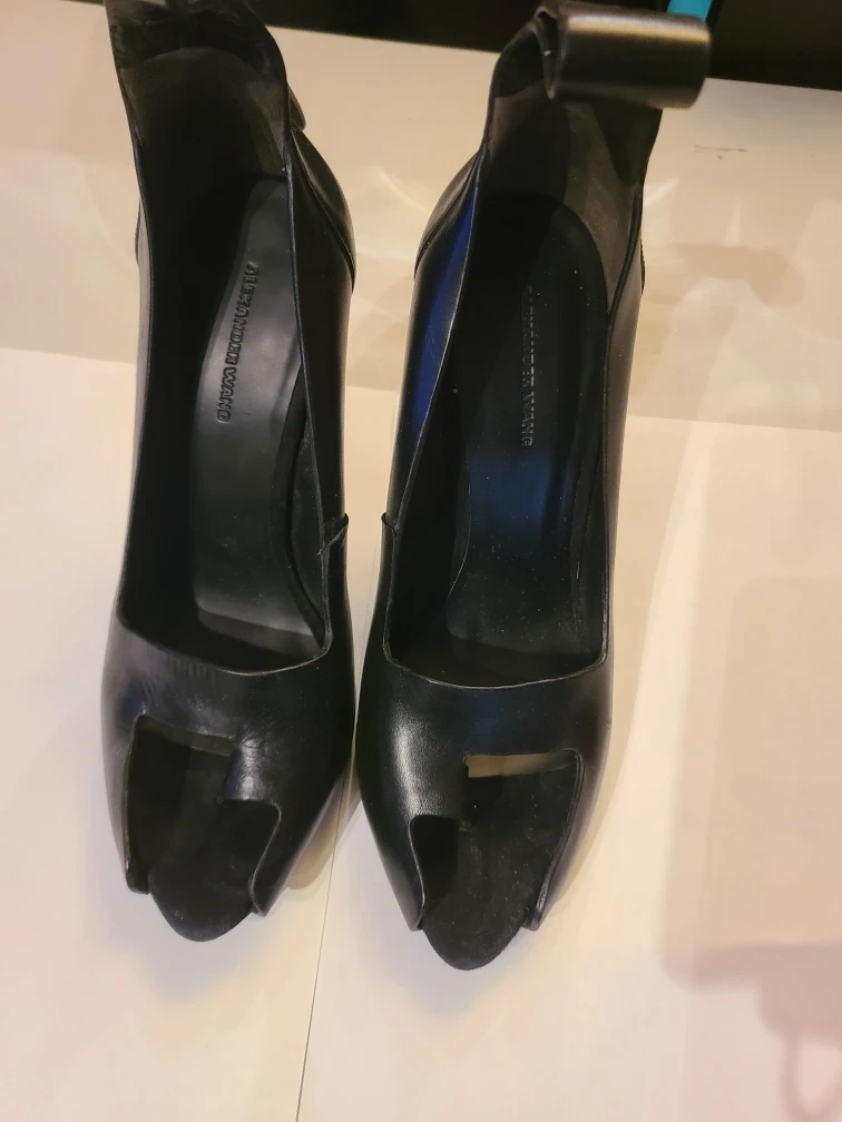 Selling a pair of unique Alexander Wang black genuine leather heels size 7. Price reflects condition (see photos).