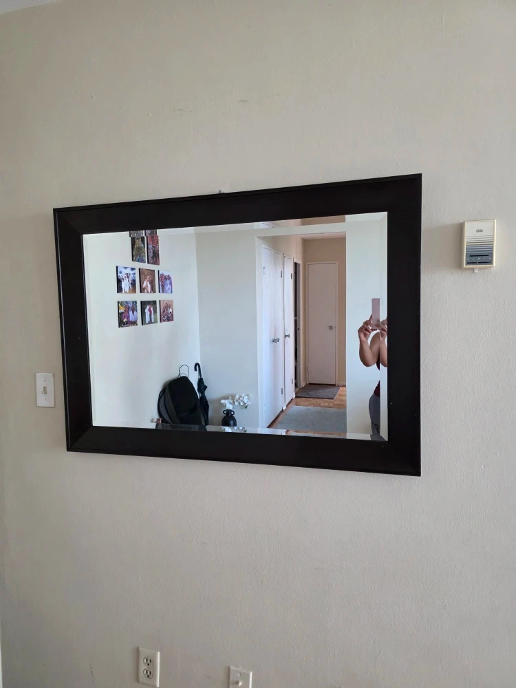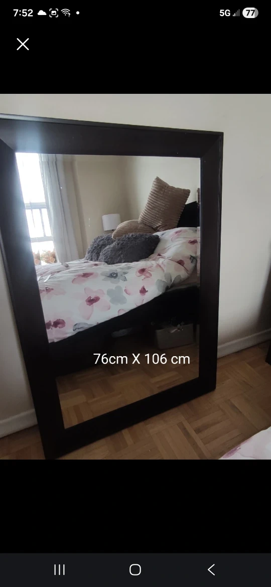 Selling a large framed wall mirror. It measures 76cm x 106cm and would look great in any room of the house