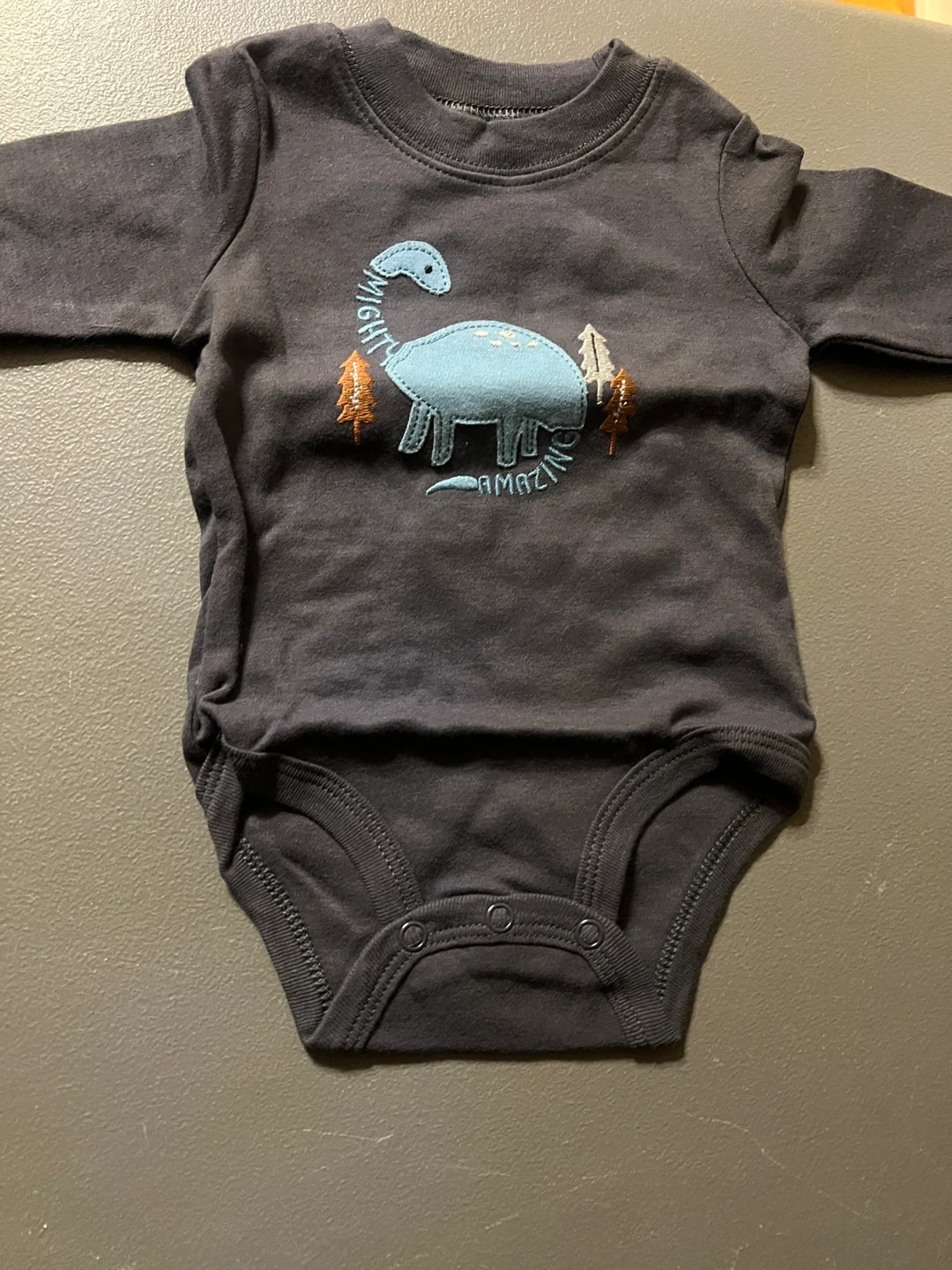 Cute Child of Mine made by Carter's baby outfit in size 0-3 months! Includes a long-sleeved bodysuit with a dinosaur design and striped pants. Perfect for your little one! Item is brand new. Item comes from a pet and smoke free home. Port union/401/Pickering for pick up.