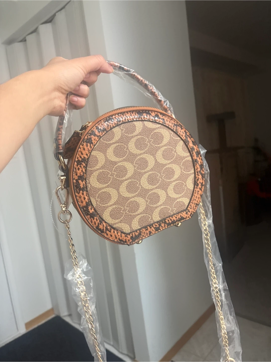 Selling a brand new Coach round crossbody bag! It's in perfect condition, never been used. This stylish bag is perfect for adding a unique touch to any outfit. The round design and crossbody style make it both fashionable and practical. It also features a chain strap. Pick up cash only