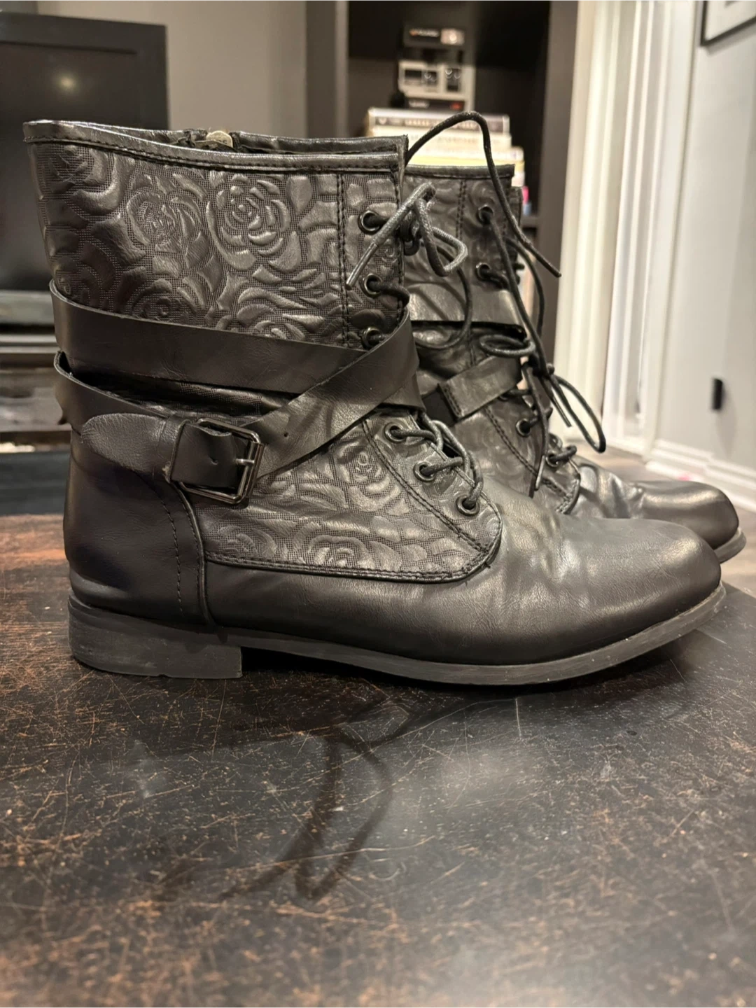 Torrid size 10-11 women’s vegan leather boots. Stylish and comfy.