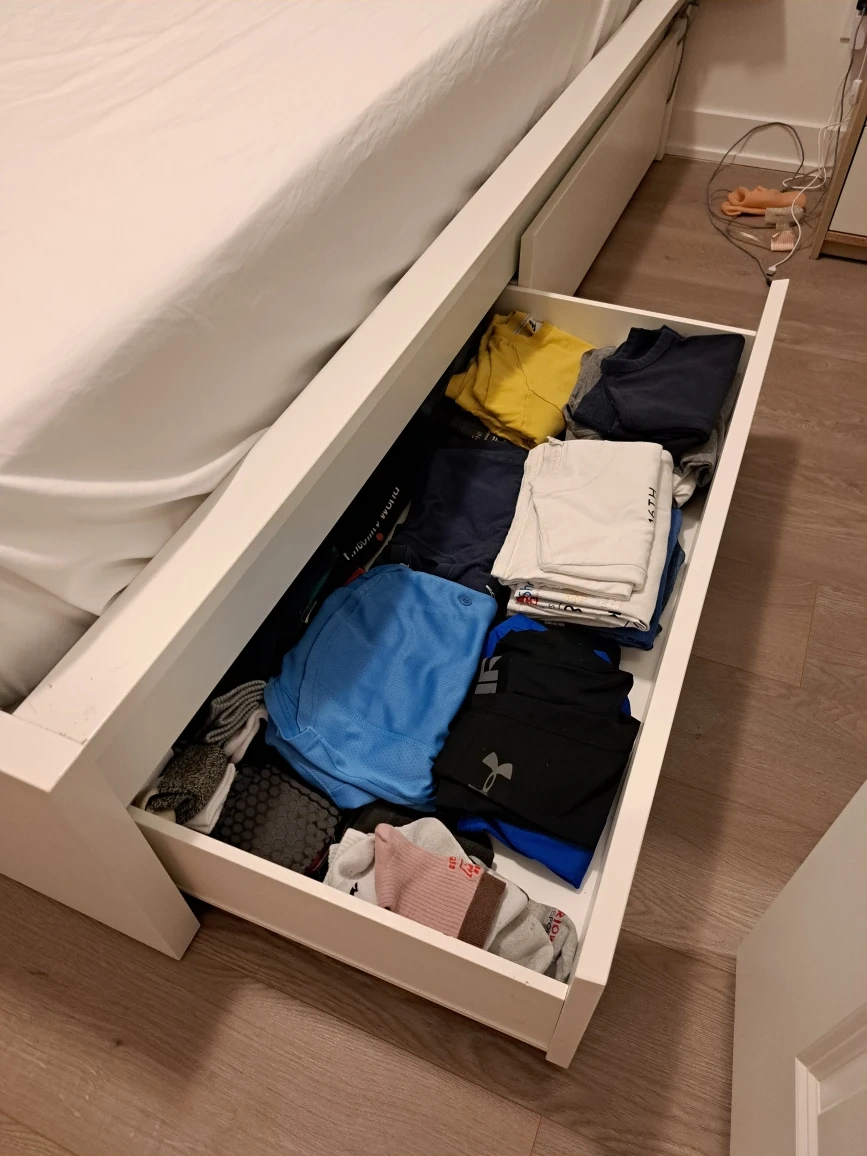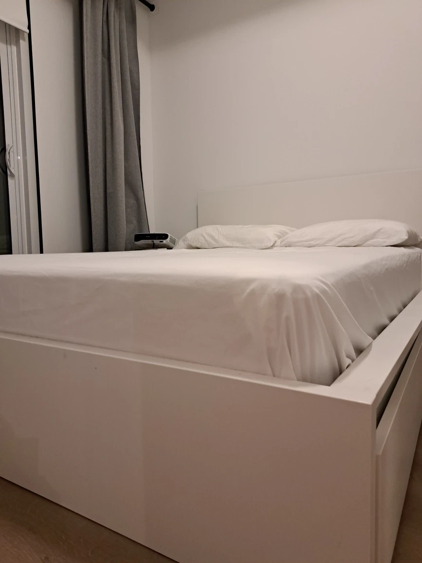 Selling a white IKEA Malm bed frame and a mattress! It's in great shape and comes with four built-in storage drawers, perfect for keeping your bedroom tidy. The drawers are as deep as the center of the bed so there's plenty of storage space. It's super functional and a great space saver!