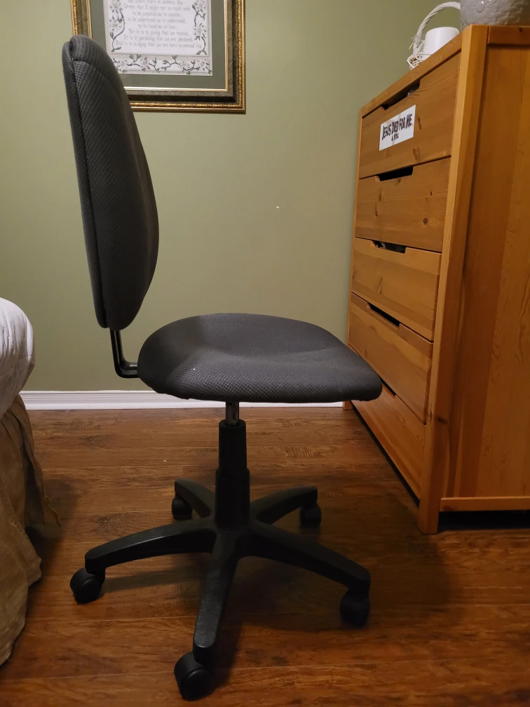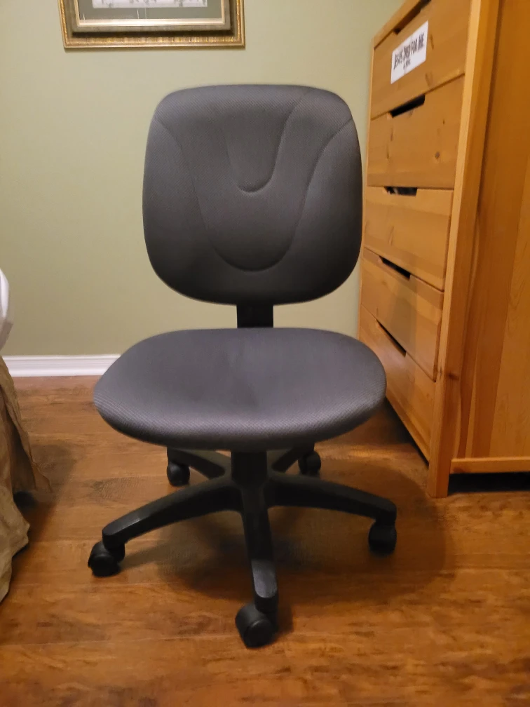 Selling a grey office chair. It's in good condition and ready for a new home! Perfect for your home office or study space. Hydraulic cylinder is working.