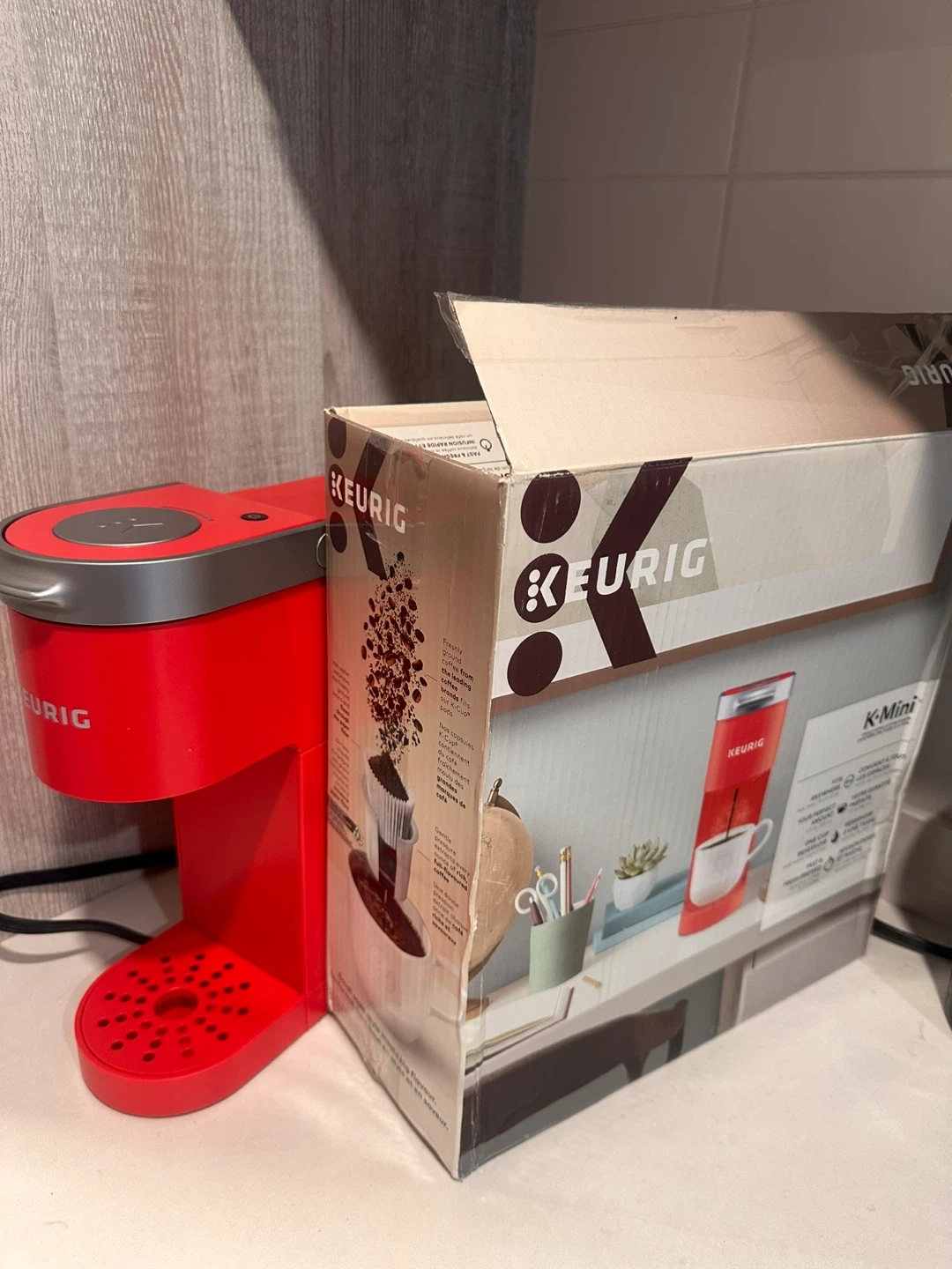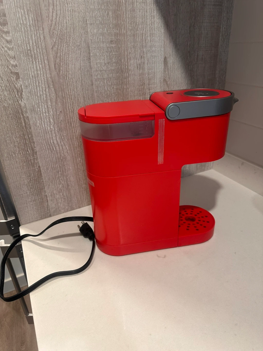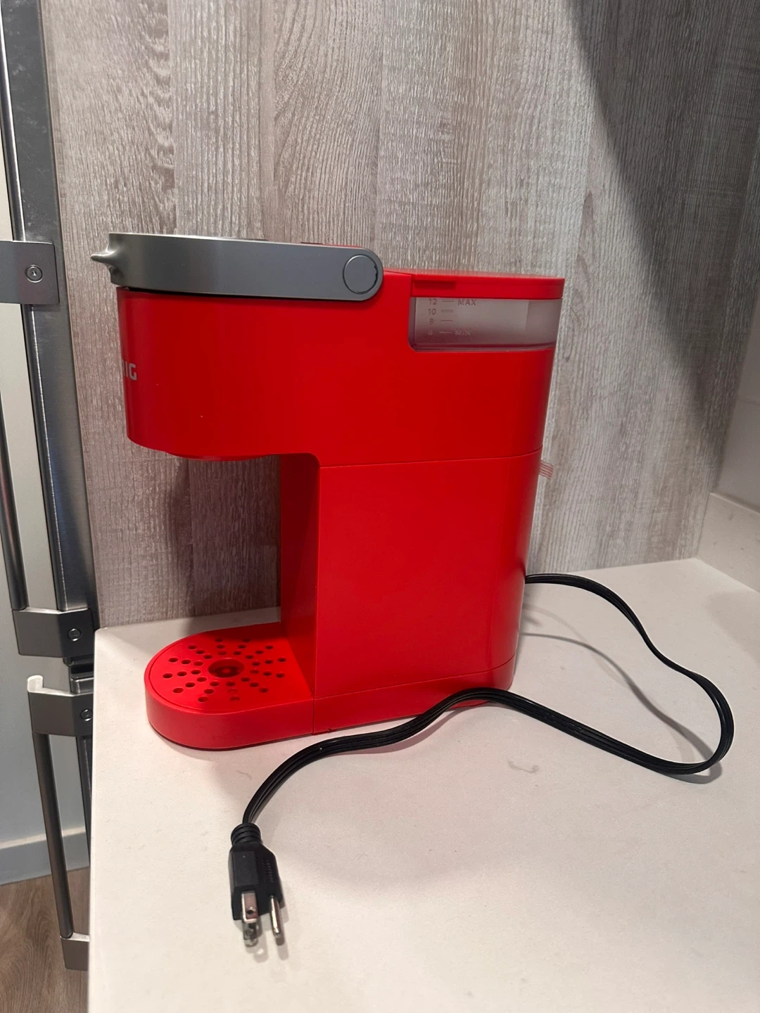 Selling a Keurig K-Mini single serve coffee maker in red! It's in great shape and perfect for small spaces or anyone who just wants a quick cup of coffee in the morning