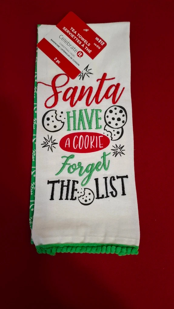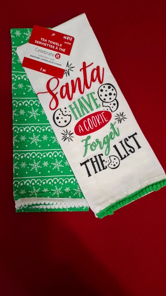 232I'm selling a set of Celebrate It! Christmas tea towels. They are brand new and feature a fun Santa and cookie design. The set includes two towels, perfect for adding a festive touch to your kitchen this holiday season! Pickup McCowan Rd and Lawrence Ave East area in Scarborough. Cash payment.