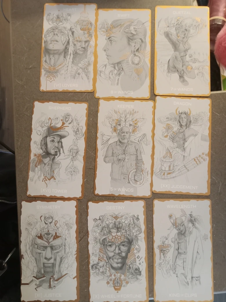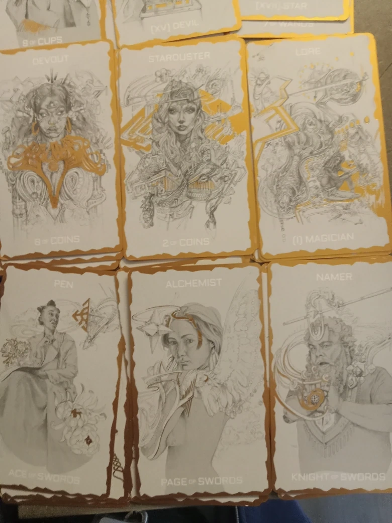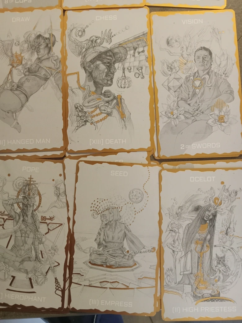 Selling a tarot card deck with unique artwork. Each card features intricate illustrations with a gold trim. Perfect for anyone interested in tarot reading or collecting unique decks!