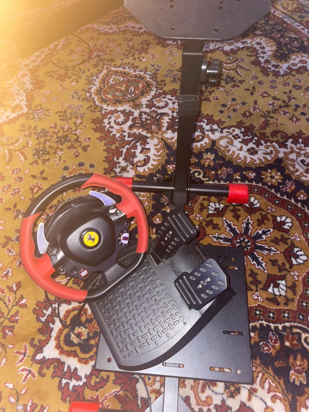 Selling a Thrustmaster racing wheel and pedal set! It features the iconic Ferrari logo. Perfect for racing game enthusiasts!