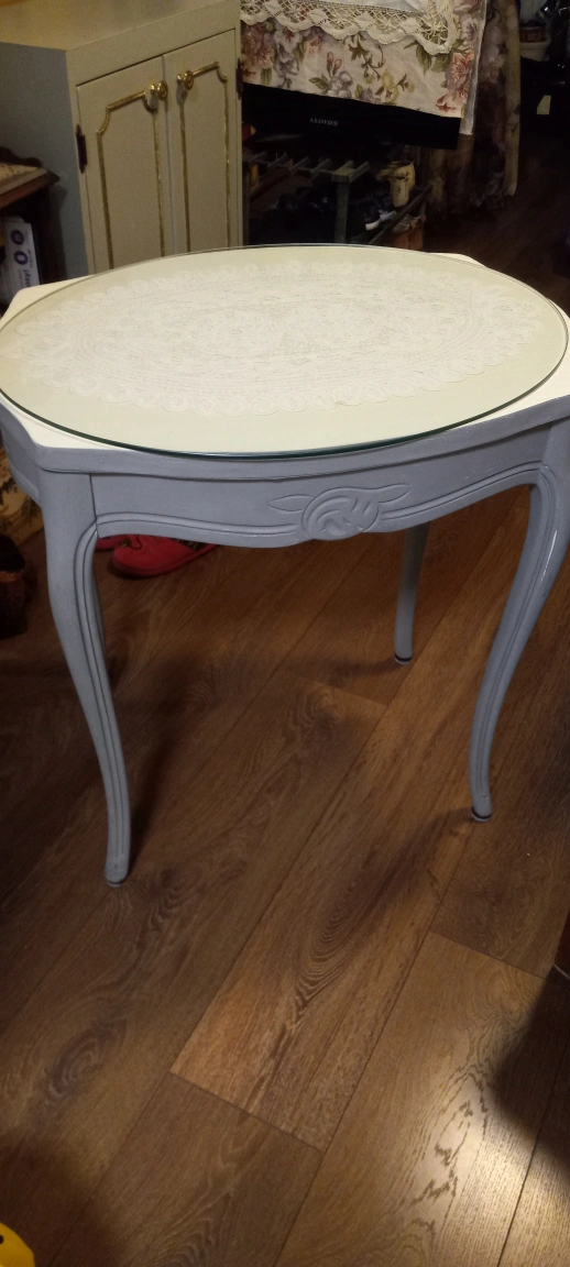 Selling a cute accent table! It's painted a nice grey milk paint colour and would service a meal nicely or a coffee tray between two chairs.