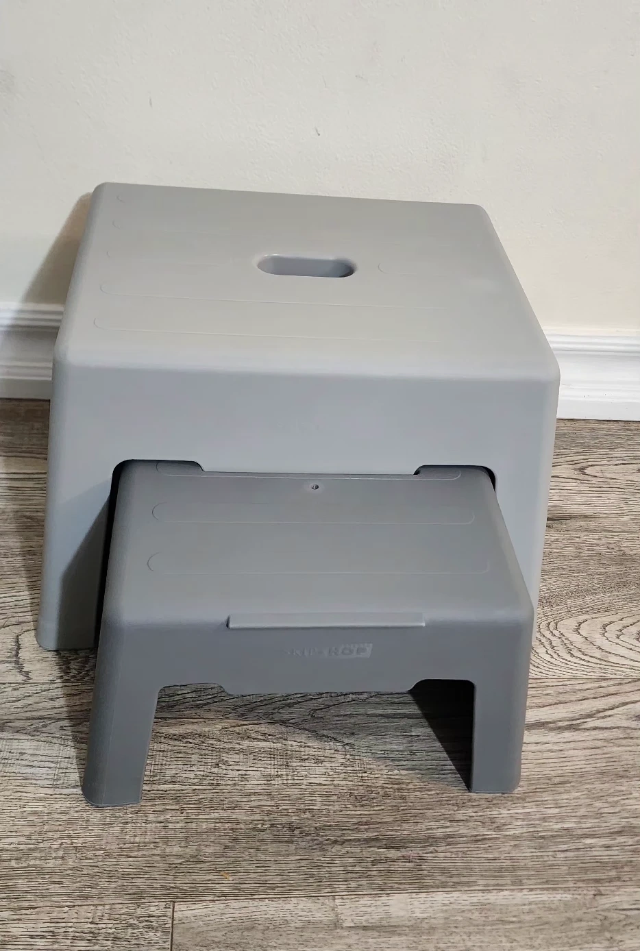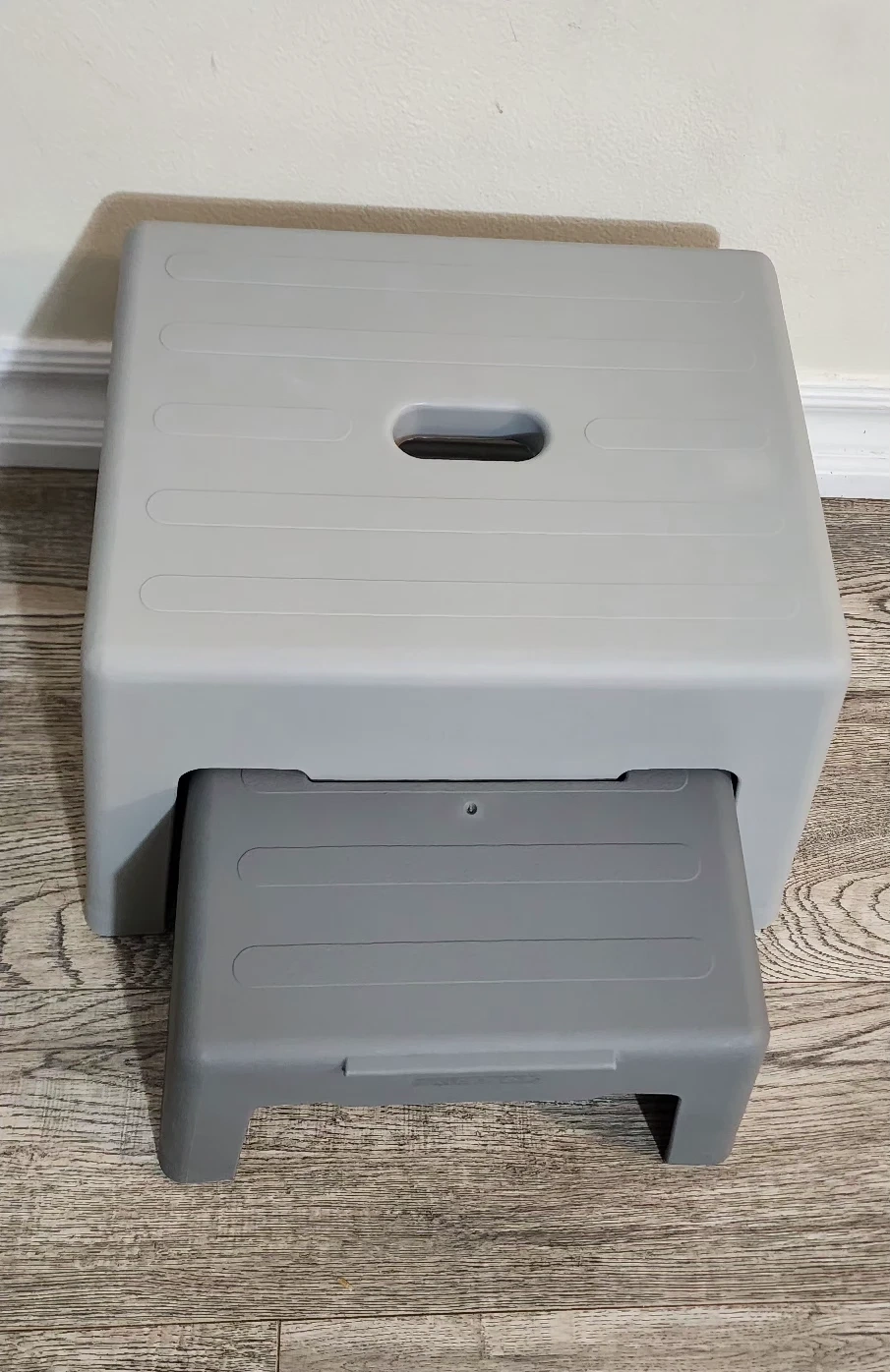 Size (inches): Large step stool: 13.25W x 8.5H x 10.25D; Small step stool: 10.375W x 6H x 10.25D