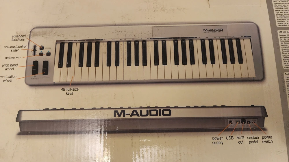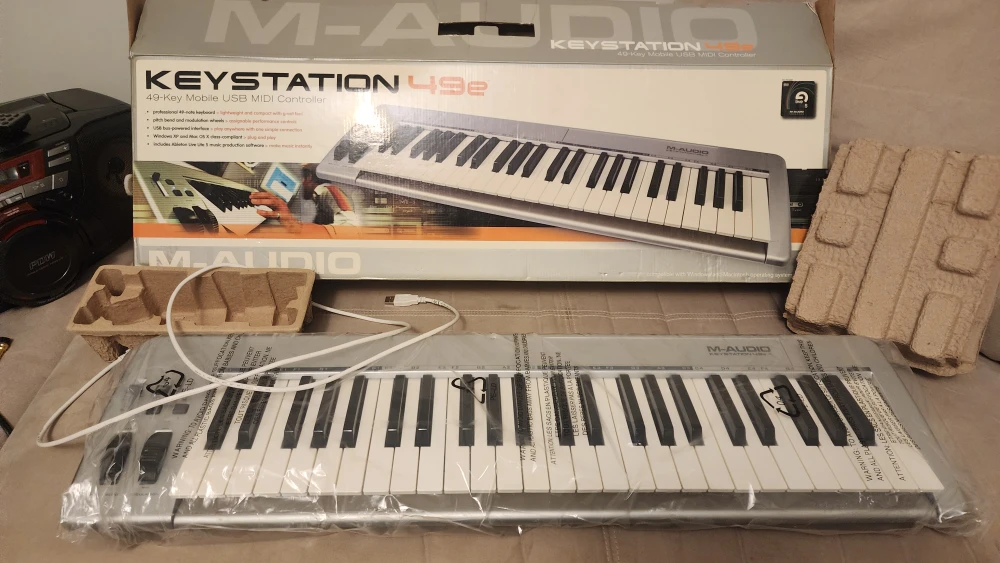Selling an M-Audio Keystation 49e USB MIDI Controller in excellent condition! It has 49 full-size keys and is USB powered, so no external power supply is required.