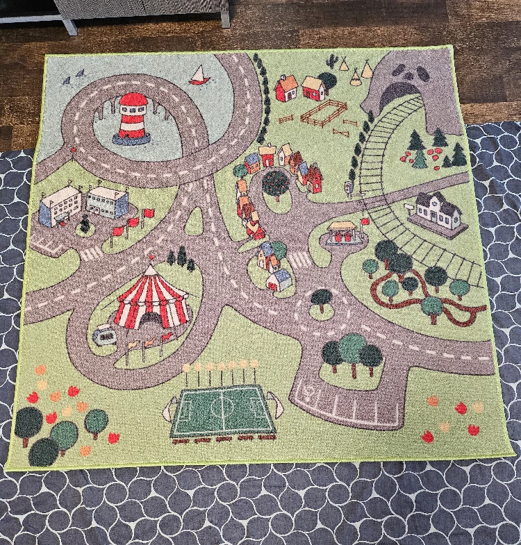 Selling this City Themed area rug for children. . It's in good condition. There are no stains on the rug and it's not dirty.