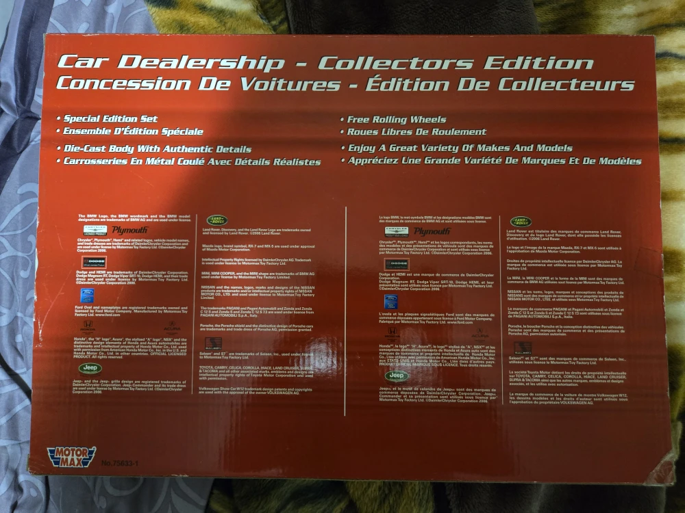 Selling a Motor Max Car Dealership Collectors Edition set from 2006! It includes a special edition set with die-cast bodies and authentic details. Enjoy a great variety of makes and models with free rolling wheels. The set features various cars like the 2005 Dodge Magnum, Porsche 911, and Toyota Corolla, to name a few