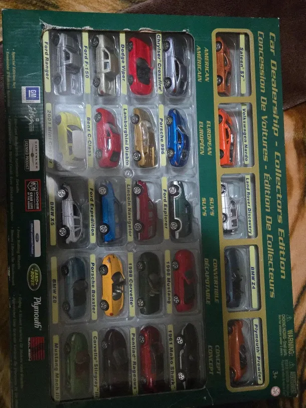 Selling a Motor Max Car Dealership Collectors Edition set from 2004! This special edition set features die-cast metal cars with authentic details. Enjoy a great variety of makes and models with free rolling wheels. It includes American, European, SUV, Convertible and Concept cars.