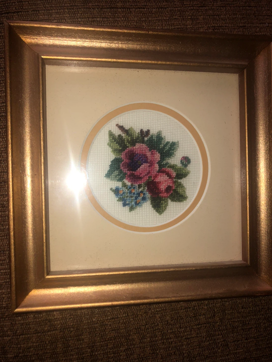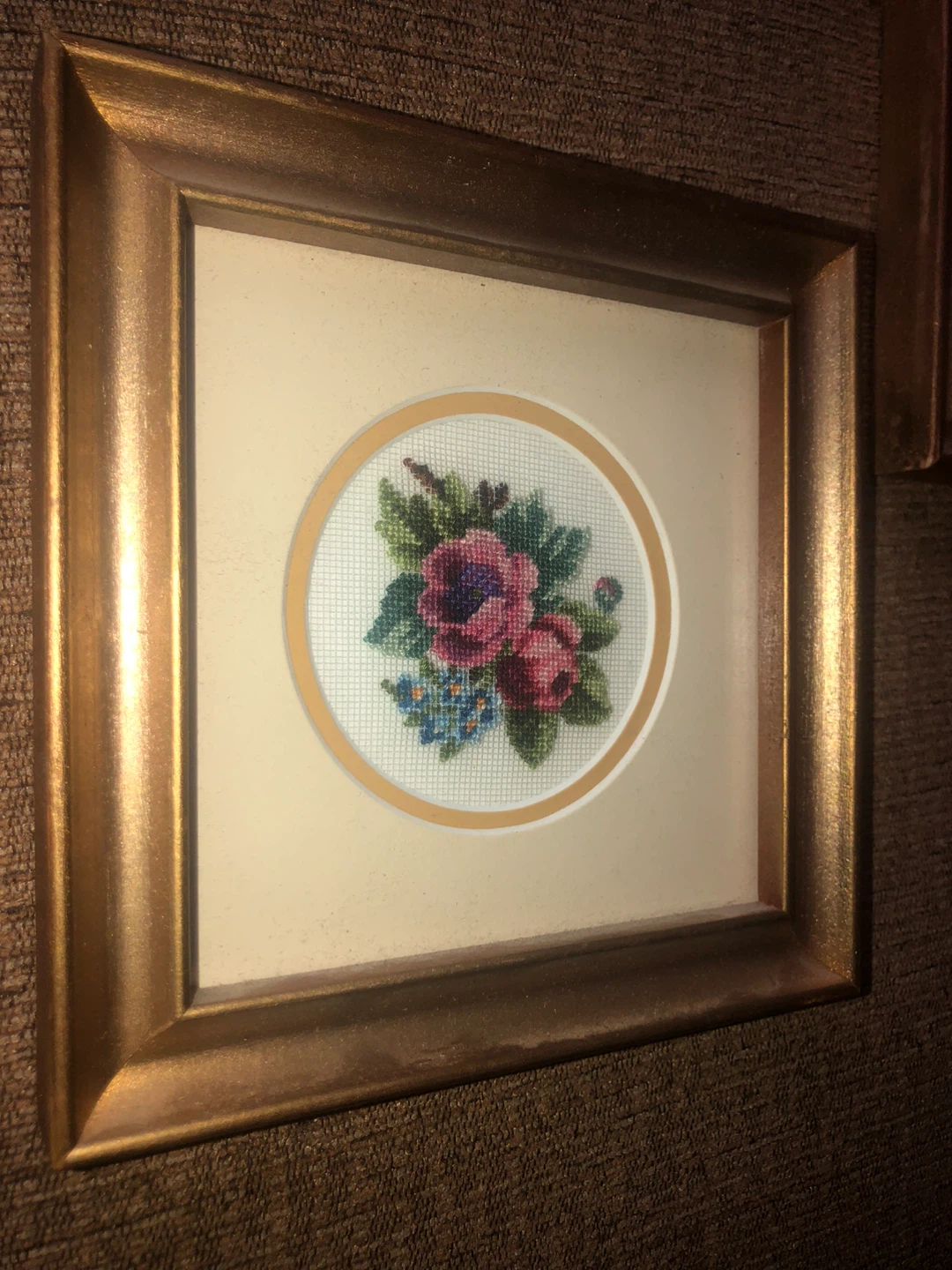Vintage Framed Floral Needlepoint Art