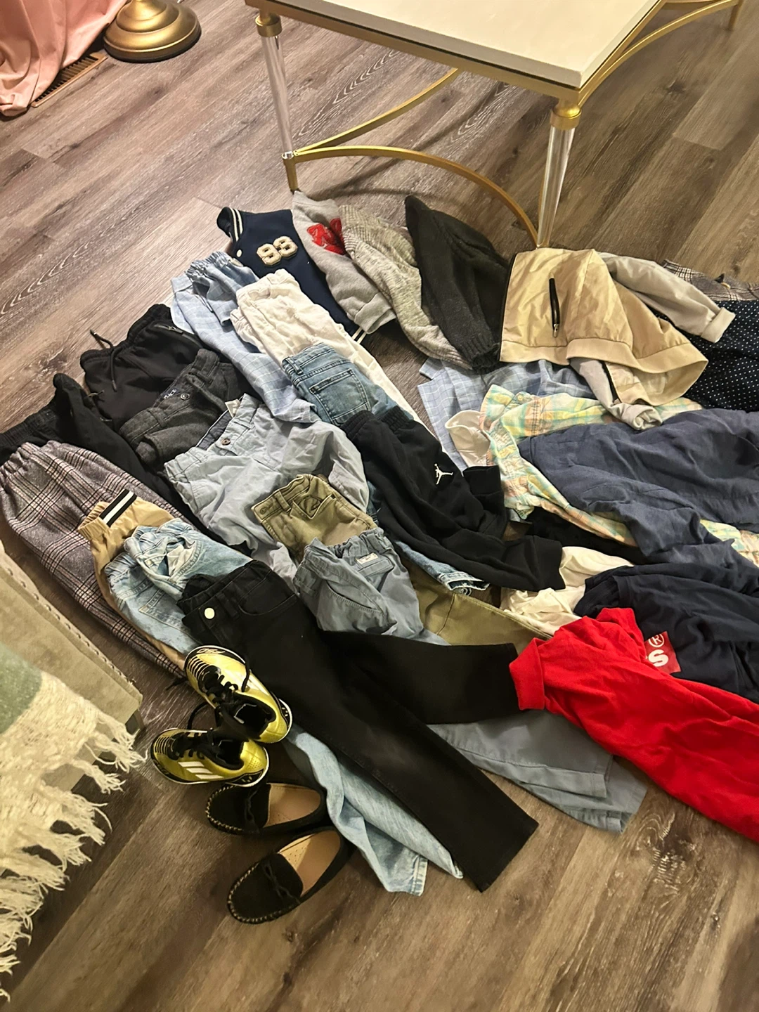 I'm selling a mixed lot of kids' clothing! There's a variety of items, including pants, shirts, and jackets. Perfect for stocking up on some new clothes for your little one