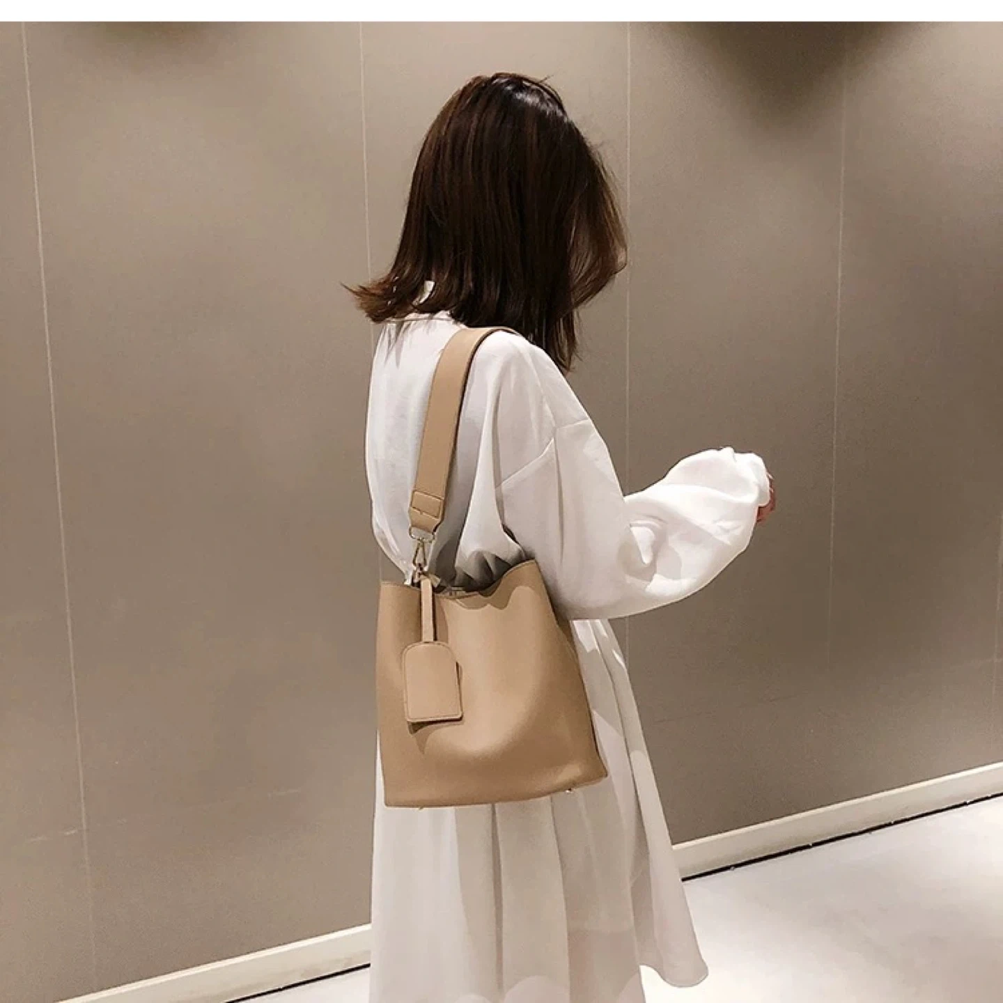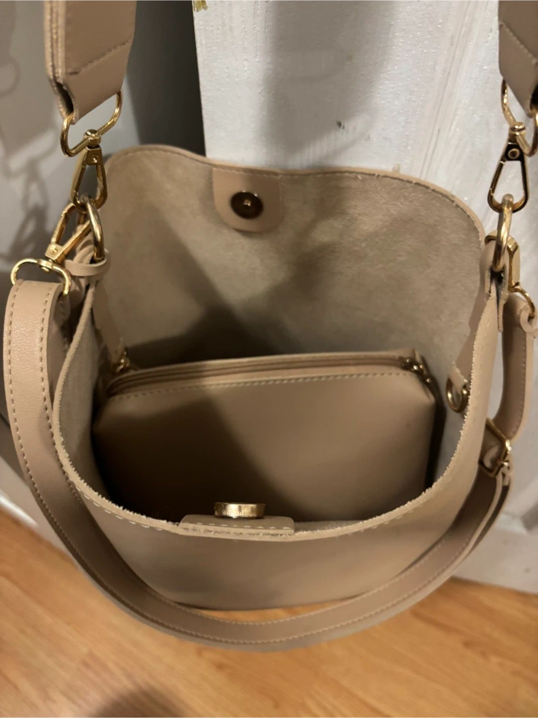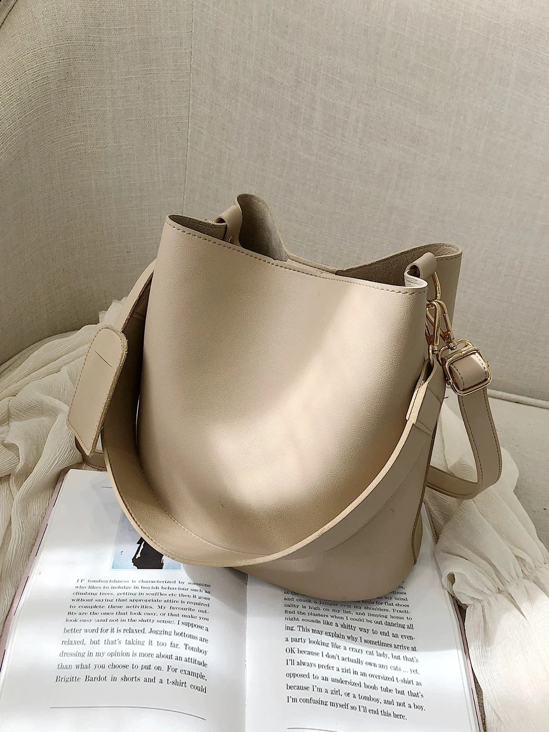 Beige Bucket Bag with Adjustable Straps
