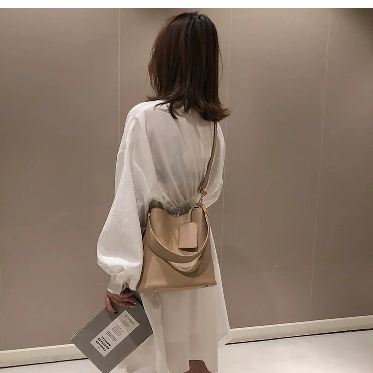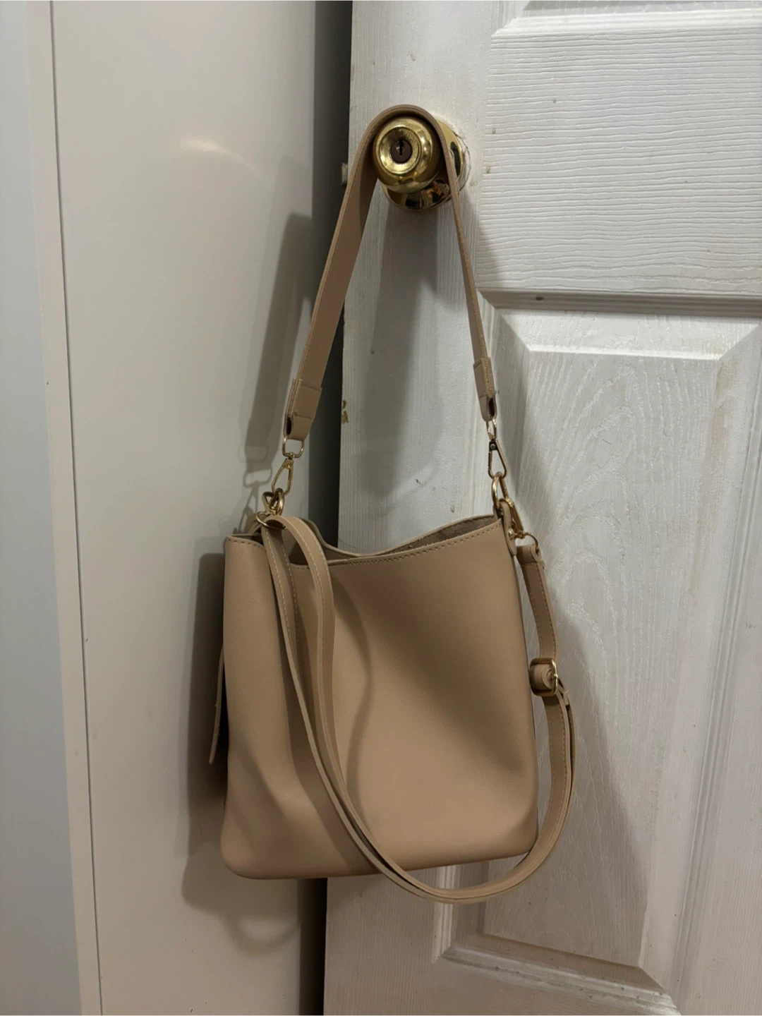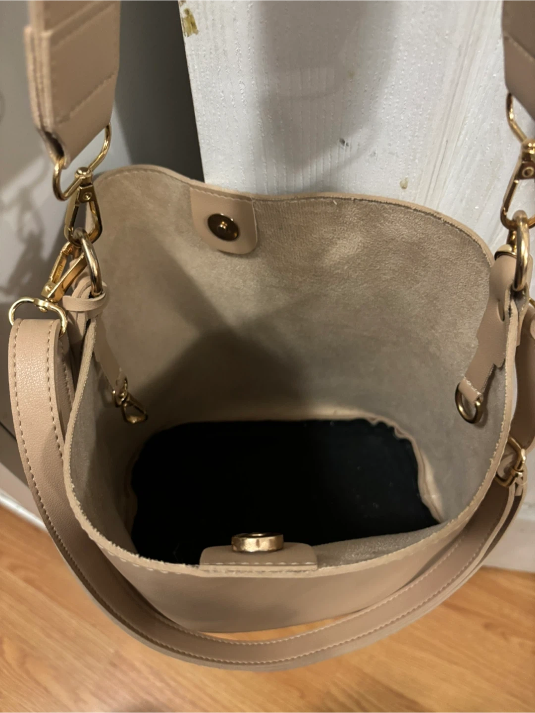 Beige Bucket Bag with Adjustable Straps