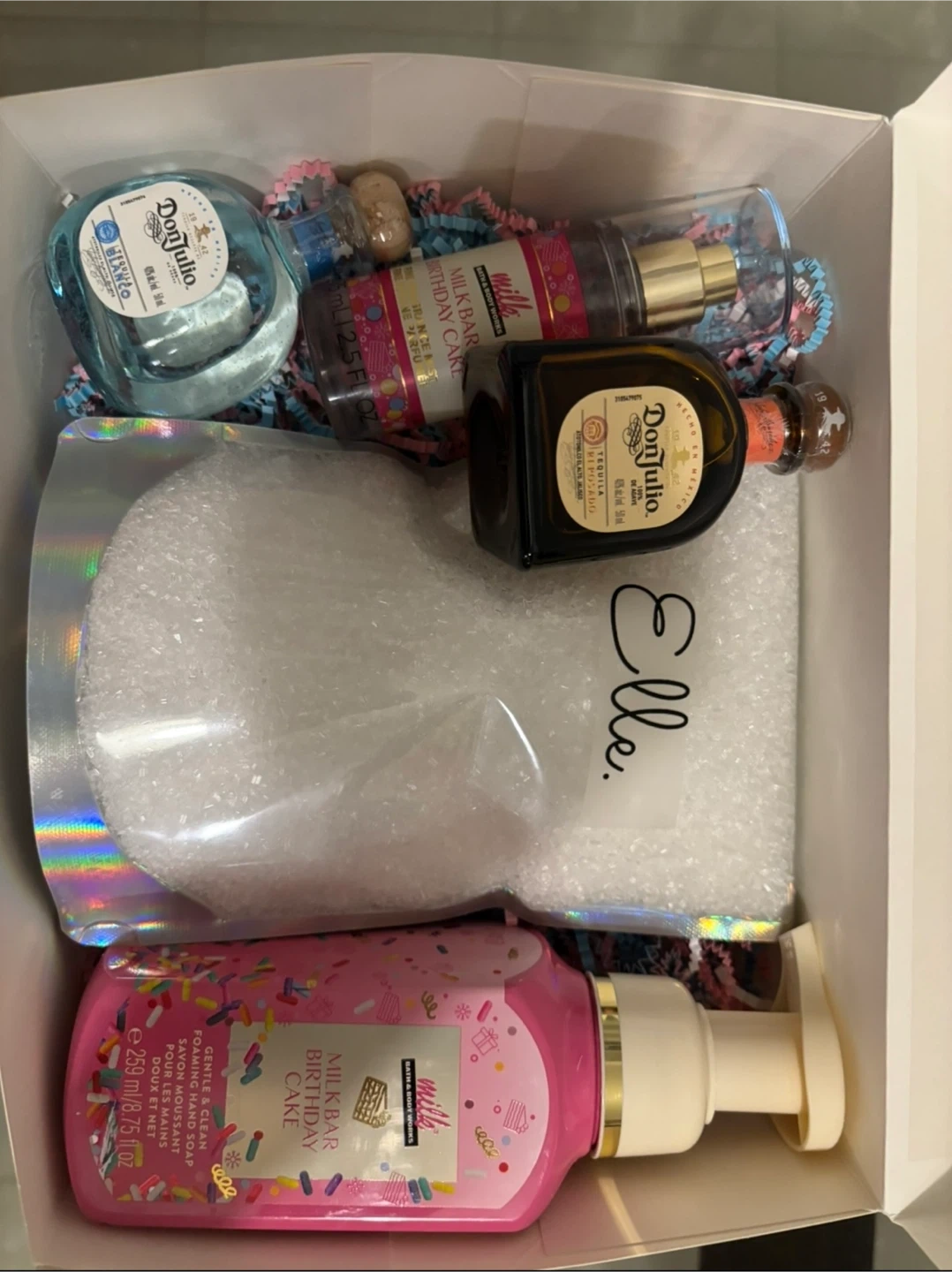 • bday set: hand soap, spray, 2 mini don Julio tequilas $60