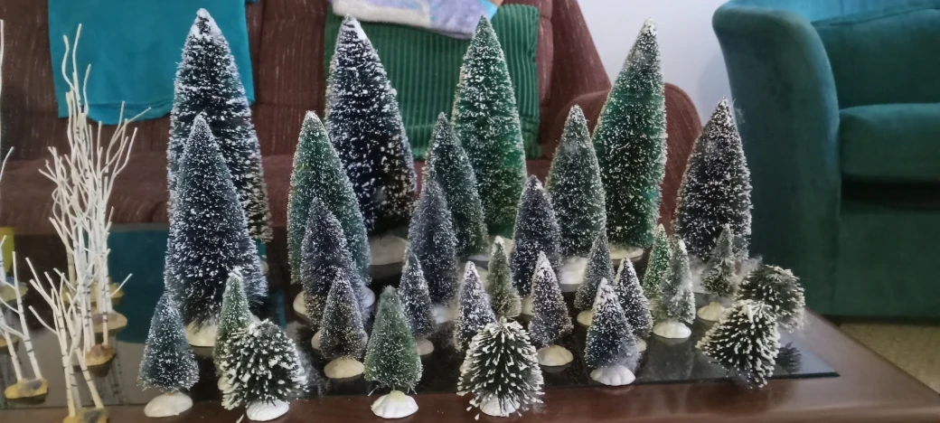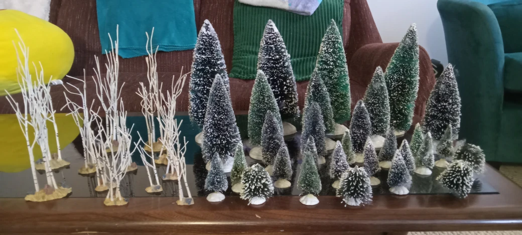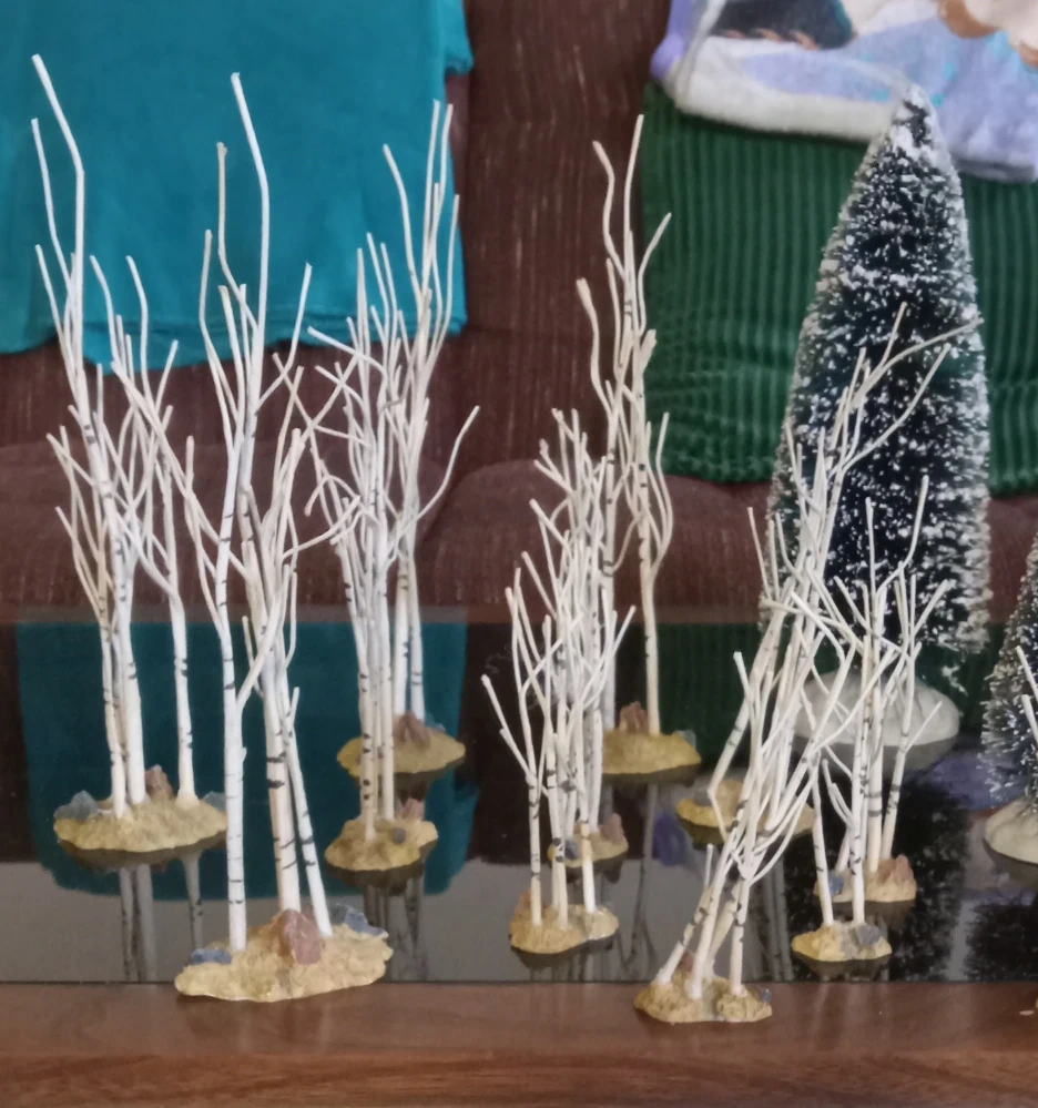 Here's a cute set of miniature Christmas trees and birch tree decorations! They're perfect for adding a festive touch to your home this holiday season
