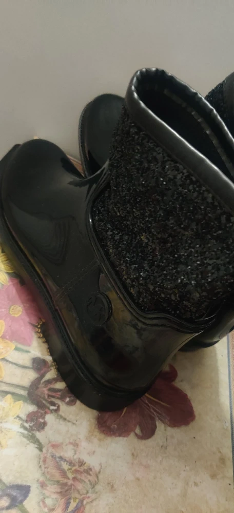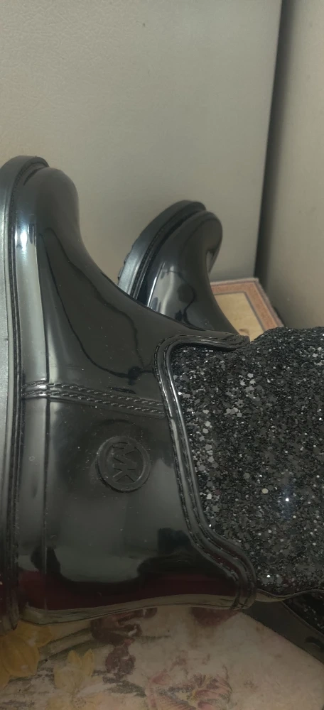 Selling a pair of Michael Kors rain / winter boots in great condition! These are a size 10 and feature a stylish black glitter design. Perfect for keeping your feet dry and looking good on rainy days! Worn twice. Please check for availability when you are able to pickup