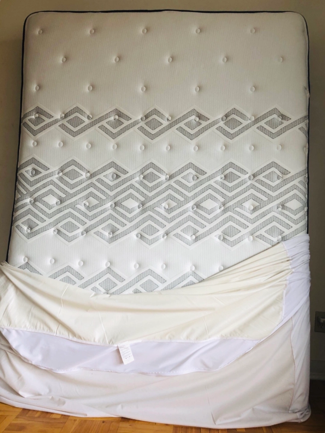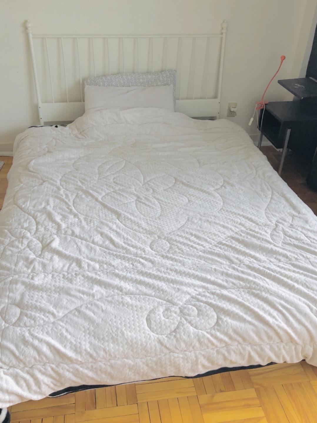 It's very clean because I put on the bed protection cover.